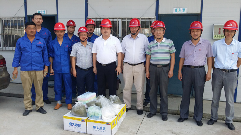 每到一個項目,公司領導都認真聽取了項目部施工現場情況詳細介紹,了解施工進度和下一步施工計劃,仔細詢問了現場防暑降溫工作的落實情況,對在炎熱天氣下仍在一線緊張工作的員工表示親切的問候,要求項目部合理安排好作息時間,避開高溫時的作業,并把綠豆、白糖、毛巾、礦泉水、風油精、人丹、十滴水等防暑降溫用品親自送到他們的手中,叮囑大家一定要做好防暑降溫工作,在施工現場多配備防暑降溫飲品及藥品,采取各種有效措施,確保員工的身體健康和施工安全。
