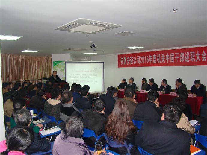 1月3日下午,公司舉行了2016年度機關中層干部述職大會。公司領導班子成員、機關中層干部、分公司黨政主要領導、機關全體員工共102人參加了此次會議。大會由公司黨委書記、副總經理胡六中主持。