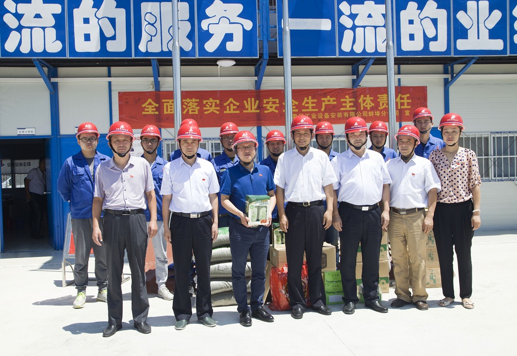 炎炎夏日送清涼,絲絲關愛寄深情。為確保基層一線職工安全度夏,7月(yue)21日上午,集團公司黨委副書記牛曙東冒著高溫酷暑,在黨委工作部主任徐文聯,安徽安裝公司董事長、總經理王軍邦,紀委書記、工會主席李寬旭的陪同下,到安徽安裝公司蚌埠卷煙廠項目,為堅守在高溫下工作一線的干部員工送去了“清涼”和集團黨委親切的慰問,同時還為黨員干部、入黨積極分子上了一堂別開生面的黨課。
