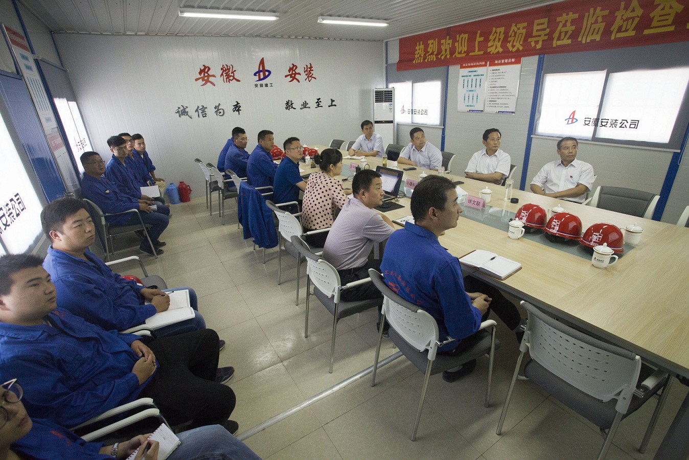 會上,蚌埠卷煙廠項目部臨時黨支部從項目管理和項目黨建進行了匯報,牛曙東聽取匯報后,從生產管理要與現代科技創新、BIM技術、QC活動相結合;對外經營要放大格局,抓住皖北拓展全國等提出了要求。對項目加強團隊建設、廉潔文化建設、培養年輕同志等方面進行了具體指導。同時,為項目黨員干部、入黨積極分子上了一堂生動的黨課。黨課上,牛曙東要求黨員要認真學習黨章黨規條例,學習系列重要講話,進一步明確把支部建在項目上,做合格黨員的重大意義,認真履行黨章第三條規定的黨員“八項義務”,自覺遵守、嚴肅執行黨章第十條明確的“四個服從”,時刻自重、自省、自警、自勵,堅守共產黨員的精神追求,堅持正確的方向,保持對黨的忠誠,增強“四種意識”“四個自信”,自覺做到三個不動搖、“五個純粹”;基層黨組織標準化建設,要與扎實推進10個方面違規行為專項治理和十大廉潔風險防控工作相結合,要抓好黨建品牌創建活動,形成一批富有安徽建工特色的、社會認可的黨建工作品牌;要立足崗位,發揮黨員先鋒模范作用,自覺做到關鍵崗位有黨員、困難面前有黨員、攻堅克難有黨員,黨員身邊無違章、黨員身邊無事故、黨員身邊無違紀;通過開展“黨員示范崗”活動,引領普通員工開展學先進技術、學規章制度,做敬業好員工,要與開展“兩學一做”學習教育推進“講重作”專題教育互促共進,實現黨員與普通員工的共同提升,促進蚌埠卷煙廠項目完美履約,讓安徽安裝的美譽度在皖北的大地上高高飄揚。