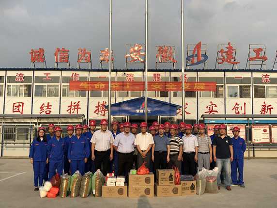 7月31日,副總經理劉安俊,紀委書記、工會主席李寬旭到蚌埠分公司的蚌埠卷煙廠易地搬遷項目部,送去了綠豆、毛巾、藿香正氣液等防暑降溫物品,叮囑他們要克服高溫帶來的困難,做好防暑工作,并注意休息;同時,要求落實好夏季送清涼工作,維護廣大職工的健康權益,切實將“情系職工、夏送清涼”活動落實到安全生產工作中。