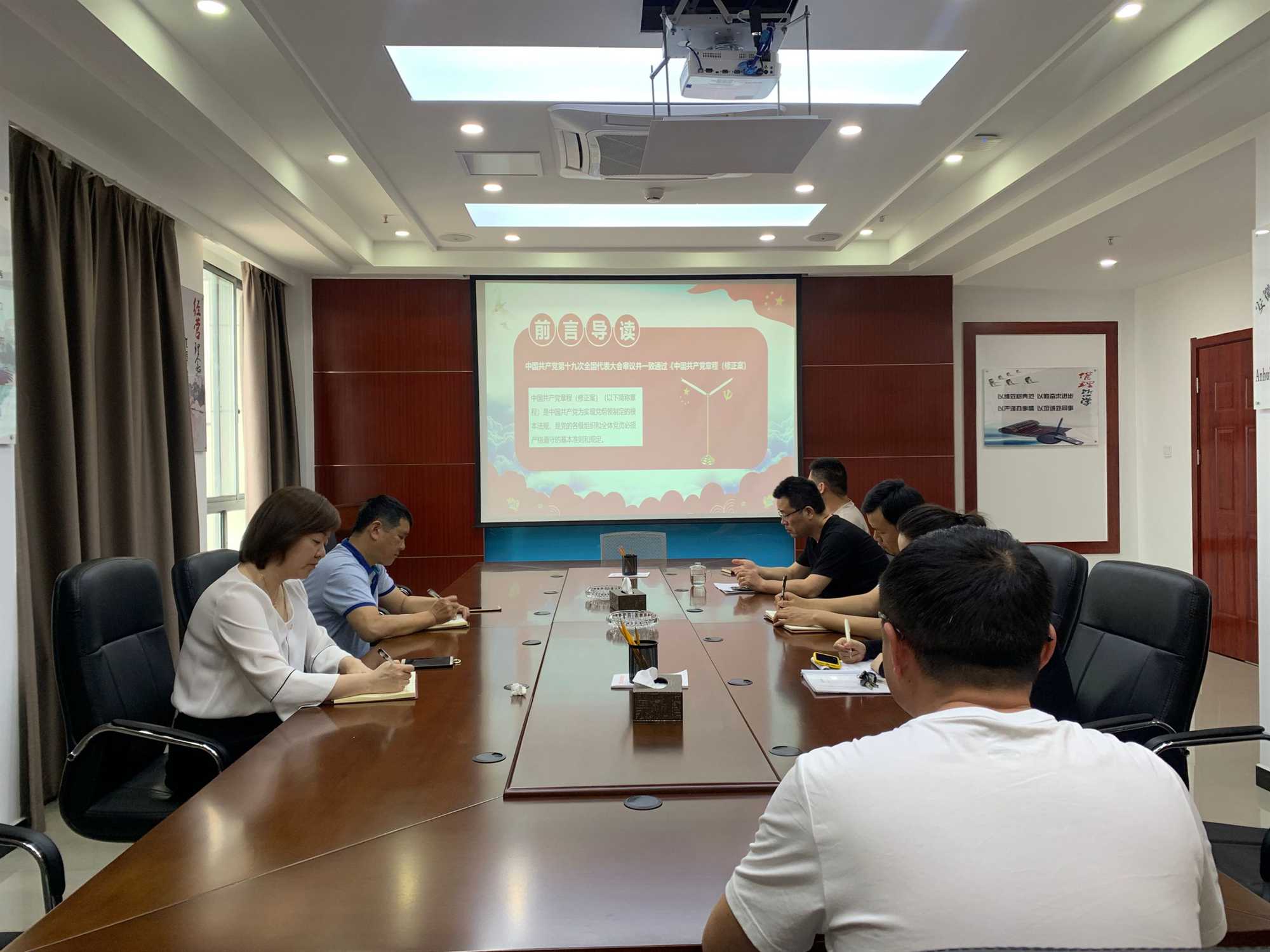 為積極落實安徽安裝公司黨委關于持續深入扎實學好用好黨章的通知,安慶分公司黨支部充分利用五月份黨員活動日,由分公司支部委員李雙江為全體黨員上了一堂專題黨課,帶領大家深入學習新黨章,幫助黨員了解掌握新黨章的變化內容。