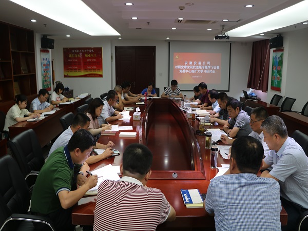 8月6日下午(wu),安徽安裝公司黨委(wei)組(zu)織召開對照(zhao)黨章黨規找差距專題學(xue)習會(hui)暨黨委(wei)中(zhong)心組(zu)擴大學(xue)習研討會(hui),公司領(ling)導班子成(cheng)員、機關部門負責(ze)人(ren)參加(jia)會(hui)議,黨委(wei)委(wei)員、紀委(wei)書記、工(gong)會(hui)主席李寬旭(xu)主持(chi)會(hui)議。