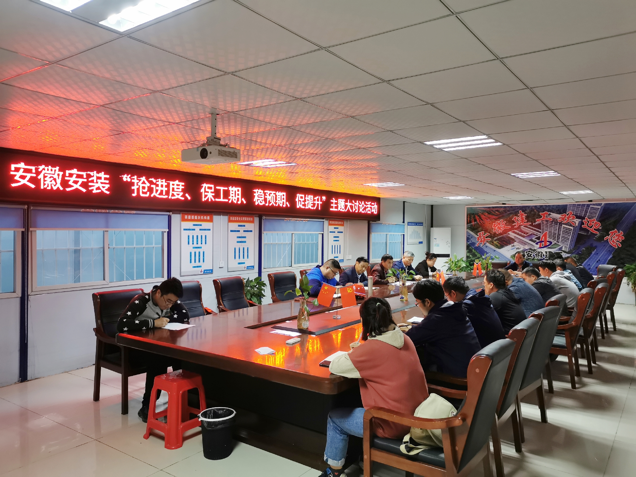 為認真貫徹集團公(gong)司(si)“搶(qiang)進度(du)、保(bao)工(gong)(gong)期、穩預(yu)期、促提(ti)升”勞(lao)動競賽活動精神,10月10日下午,安(an)徽安(an)裝公(gong)司(si)圍繞(rao)“不能按時交工(gong)(gong)為恥辱”的履約意識,在阜陽潁東區(qu)中醫院項(xiang)目(mu)部會議室,組織開展(zhan)“搶(qiang)進度(du)、保(bao)工(gong)(gong)期、穩預(yu)期、促提(ti)升”主題大(da)討論活動。公(gong)司(si)副總經理高飛,紀(ji)委書記、工(gong)(gong)會主席李寬(kuan)旭(xu),總工(gong)(gong)程師吳(wu)繼(ji)成,公(gong)司(si)相關部門負(fu)責人(ren),房建分公(gong)司(si)領導(dao)班子成員,項(xiang)目(mu)經理、技(ji)術負(fu)責人(ren)等(deng)共計20余人(ren)參加(jia)會議,會議由李寬(kuan)旭(xu)主持。