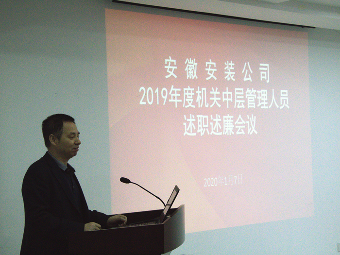 1月7日(ri)上午(wu),安(an)徽安(an)裝公司召開2019年度機關中(zhong)層管理(li)人(ren)員述職述廉會(hui)議。公司(si)領導班子成(cheng)員、機關中(zhong)層管理(li)人(ren)員、分公司(si)黨(dang)政負責人(ren)、機關部門員工代(dai)表(biao)共60余人參加了(le)此次會議(yi)。會議(yi)由公司黨委書記、董事長(chang)胡六中(zhong)主持(chi)。