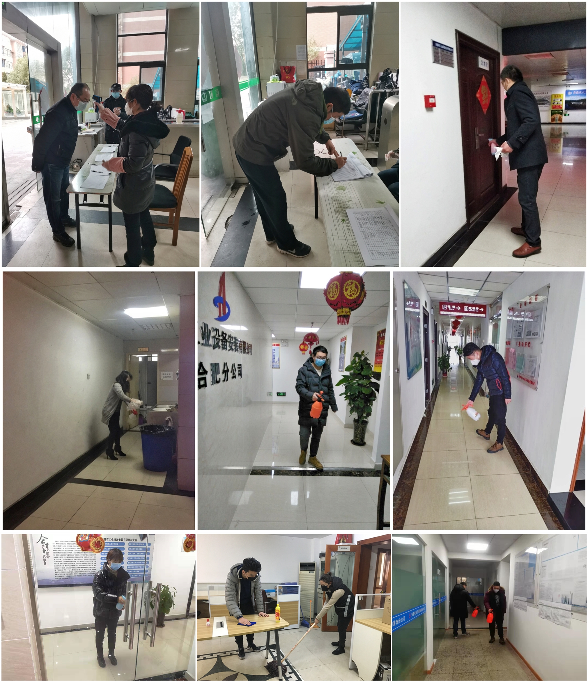 自疫(yi)情防(fang)(fang)(fang)控(kong)工(gong)(gong)作開展(zhan)以(yi)來,安徽安裝公(gong)司第一時間成立了綜合工(gong)(gong)作組(zu)、機關(guan)防(fang)(fang)(fang)控(kong)組(zu)、項目防(fang)(fang)(fang)控(kong)組(zu)、物資(zi)保(bao)障組(zu)、宣(xuan)傳報(bao)道(dao)組(zu)、執紀督查組(zu)。建(jian)立分工(gong)(gong)負責(ze),各司其職(zhi)、各負其責(ze),每(mei)天由后勤保(bao)障部(bu)安排專人(ren)(ren)定時對相關(guan)區(qu)域進(jin)行(xing)集中消(xiao)毒(du)(du),包括(kuo)衛(wei)(wei)生(sheng)(sheng)(sheng)間、水(shui)龍(long)頭、開關(guan)、門手(shou)把、會議室及(ji)辦(ban)公(gong)樓走(zou)道(dao)等。負責(ze)消(xiao)毒(du)(du)衛(wei)(wei)生(sheng)(sheng)(sheng)工(gong)(gong)作同其它疫(yi)情防(fang)(fang)(fang)控(kong)工(gong)(gong)作同步開展(zhan),確保(bao)各區(qu)域不(bu)留衛(wei)(wei)生(sheng)(sheng)(sheng)死(si)角(jiao),嚴防(fang)(fang)(fang)細菌(jun)滋生(sheng)(sheng)(sheng),每(mei)次消(xiao)毒(du)(du)按照科(ke)學配比,進(jin)行(xing)消(xiao)毒(du)(du)水(shui)稀釋,在保(bao)證消(xiao)毒(du)(du)水(shui)功效的(de)前(qian)提下(xia),盡量避免(mian)不(bu)必(bi)要的(de)浪費。在消(xiao)毒(du)(du)工(gong)(gong)作的(de)同時,宣(xuan)傳疫(yi)情防(fang)(fang)(fang)控(kong)知(zhi)識并督促員工(gong)(gong)做好衛(wei)(wei)生(sheng)(sheng)(sheng)清掃、個人(ren)(ren)衛(wei)(wei)生(sheng)(sheng)(sheng)防(fang)(fang)(fang)護等,每(mei)天進(jin)行(xing)環境衛(wei)(wei)生(sheng)(sheng)(sheng)清潔,確保(bao)環境衛(wei)(wei)生(sheng)(sheng)(sheng)干凈(jing)整潔,降低疫(yi)情傳播可能,為疫(yi)情防(fang)(fang)(fang)控(kong)工(gong)(gong)作打下(xia)堅(jian)實(shi)基礎。防(fang)(fang)(fang)控(kong)工(gong)(gong)作開展(zhan)以(yi)來,公(gong)司和分公(gong)司兩級機關(guan)做到消(xiao)毒(du)(du)工(gong)(gong)作全(quan)覆(fu)蓋,為維護公(gong)司全(quan)體員工(gong)(gong)身體健康和生(sheng)(sheng)(sheng)命(ming)安全(quan)提供堅(jian)實(shi)保(bao)障。