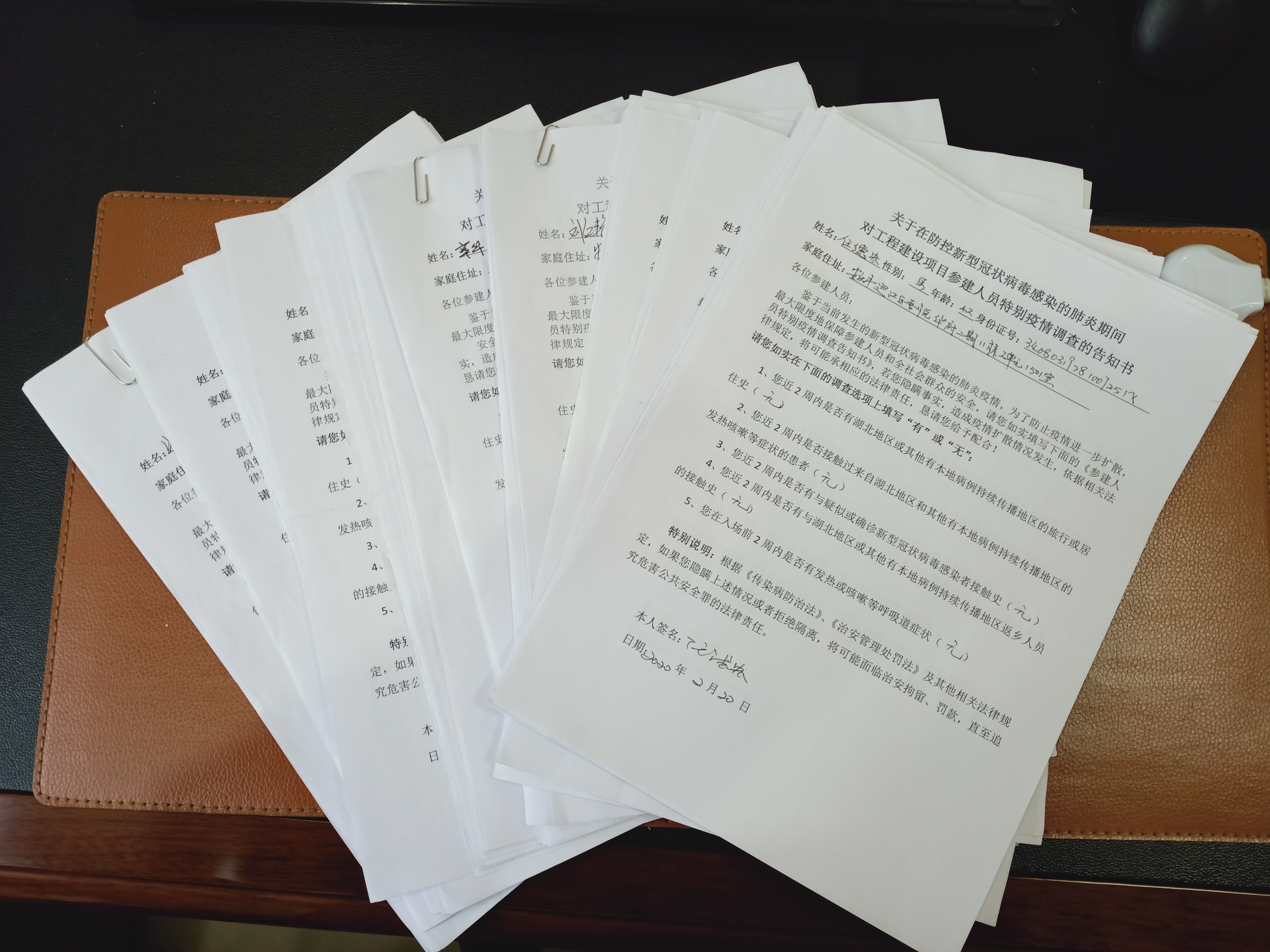 為了解疫(yi)情防(fang)控(kong)期(qi)間員工真實出行和健康情況,項目部組織員工通過(guo)運營商“漫游地查詢”公益服務和每日健康打卡(ka)獲(huo)取最近(jin)30日出行(xing)軌(gui)跡和每(mei)日健康(kang)狀(zhuang)況,要求員工簽署疫情防控告知書(shu)。確保無死角、全覆蓋(gai),嚴把人員輸入(ru)關,從源頭上(shang)消滅安全隱患因素(su)。