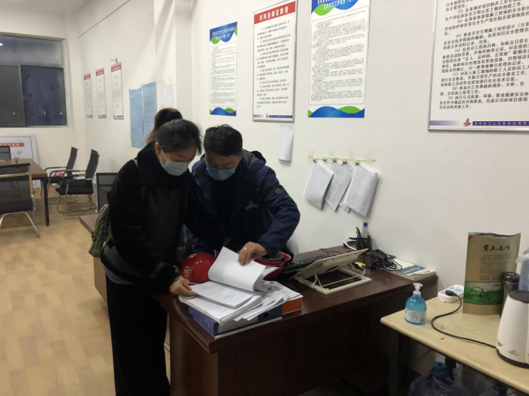 來到施(shi)工(gong)現場,檢查(cha)組一行(xing)首(shou)先(xian)查(cha)看了防疫物資儲備(bei)情況(kuang)、返崗勞(lao)務作業人員(yuan)進出工(gong)地(di)人員(yuan)排查(cha)隔離情況(kuang),現場衛生(sheng)消毒(du)、清潔打掃、體溫(wen)檢測、勞(lao)動防護進場等,接著實地(di)查(cha)看了工(gong)程的施(shi)工(gong)進展情況(kuang)。