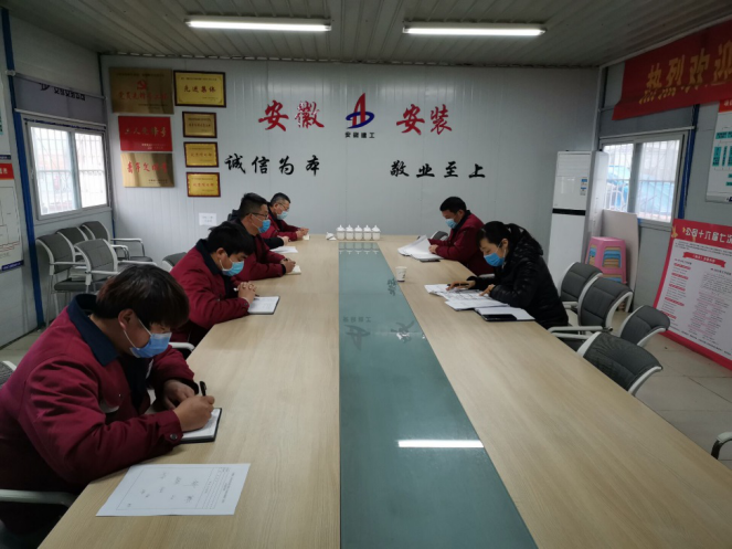 支部(bu)分(fen)別通過黨員視頻會(hui)、項(xiang)目例會(hui)、團(tuan)(tuan)支部(bu)會(hui)議等多種形式學習(xi)宣貫安(an)(an)徽建工(gong)控股(gu)一屆七次職(zhi)代(dai)會(hui)精(jing)神(shen)、安(an)(an)徽安(an)(an)裝(zhuang)第(di)十六屆七次職(zhi)代(dai)會(hui)精(jing)神(shen)、《安(an)(an)徽建工(gong)集(ji)團(tuan)(tuan)控股(gu)有(you)限公司(si)疫(yi)情防(fang)(fang)控期間(jian)復(fu)(fu)工(gong)管理方(fang)案》及《安(an)(an)徽安(an)(an)裝(zhuang)公司(si)關(guan)于切實做好復(fu)(fu)工(gong)復(fu)(fu)產前疫(yi)情防(fang)(fang)控工(gong)作的(de)通知》等疫(yi)情防(fang)(fang)控相關(guan)文件精(jing)神(shen)。與此同時(shi),為營造濃厚的(de)學習(xi)氛圍,還(huan)在項(xiang)目現場制作張貼宣傳展板,并把(ba)學習(xi)資料上傳到分(fen)公司(si)QQ工(gong)作群,把(ba)職(zhi)代(dai)會(hui)精(jing)神(shen)和疫(yi)情防(fang)(fang)控文件宣傳至項(xiang)目一線。