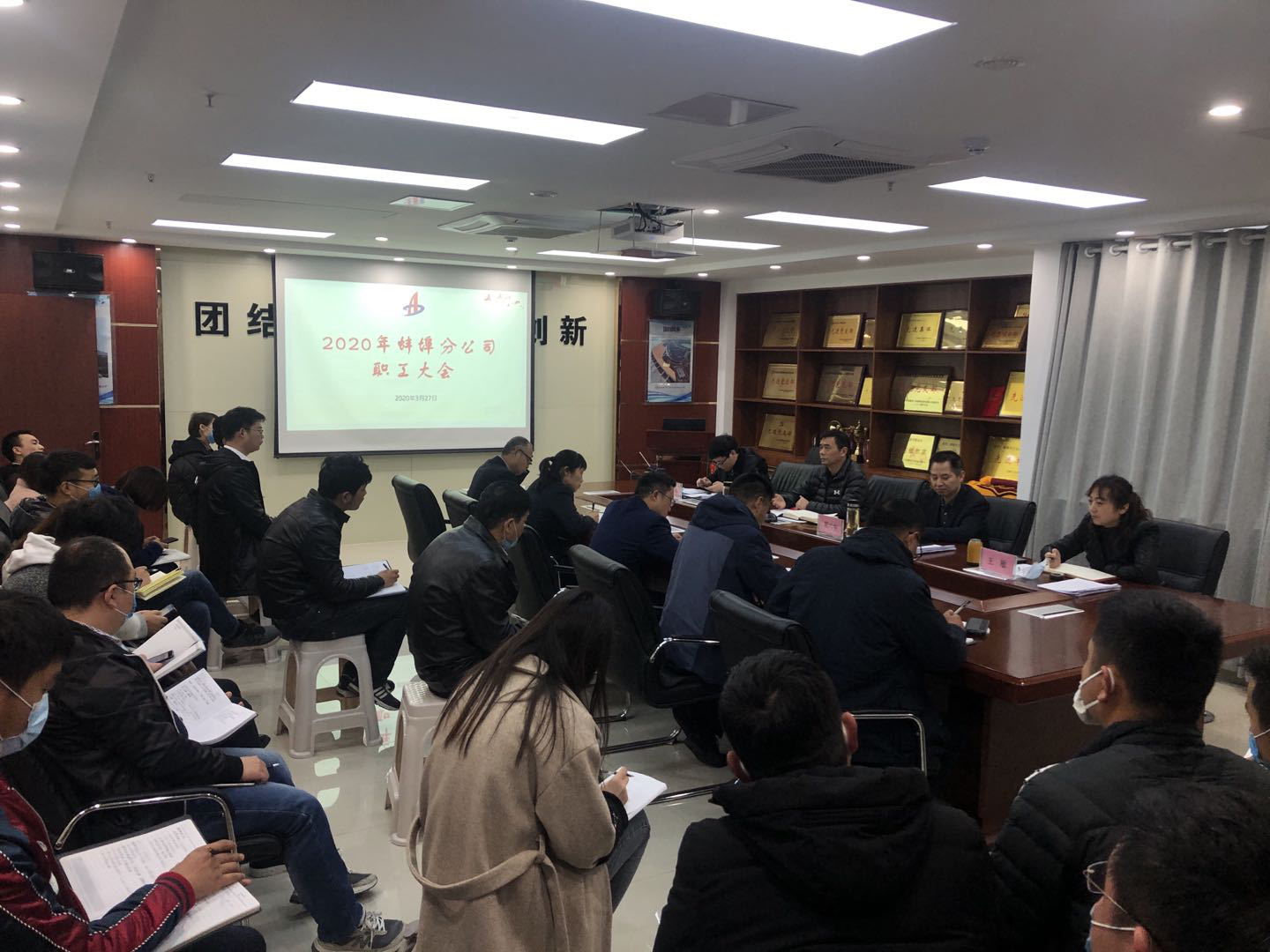 分(fen)公(gong)司經理趙銘亮首先作(zuo)了題為《一心(xin)一意謀(mou)發展 聚(ju)精會神抓(zhua)黨建——為推動蚌埠(bu)分公(gong)司可持續(xu)發展而努力(li)奮斗(dou)》的工作(zuo)報告。報告全面回顧蚌埠分公司(si)2019年(nian)各(ge)項工(gong)作取得的成績、存在的不足,同時部署2020年(nian)重點工(gong)作,明確(que)工(gong)作思路及任務(wu)目標。
