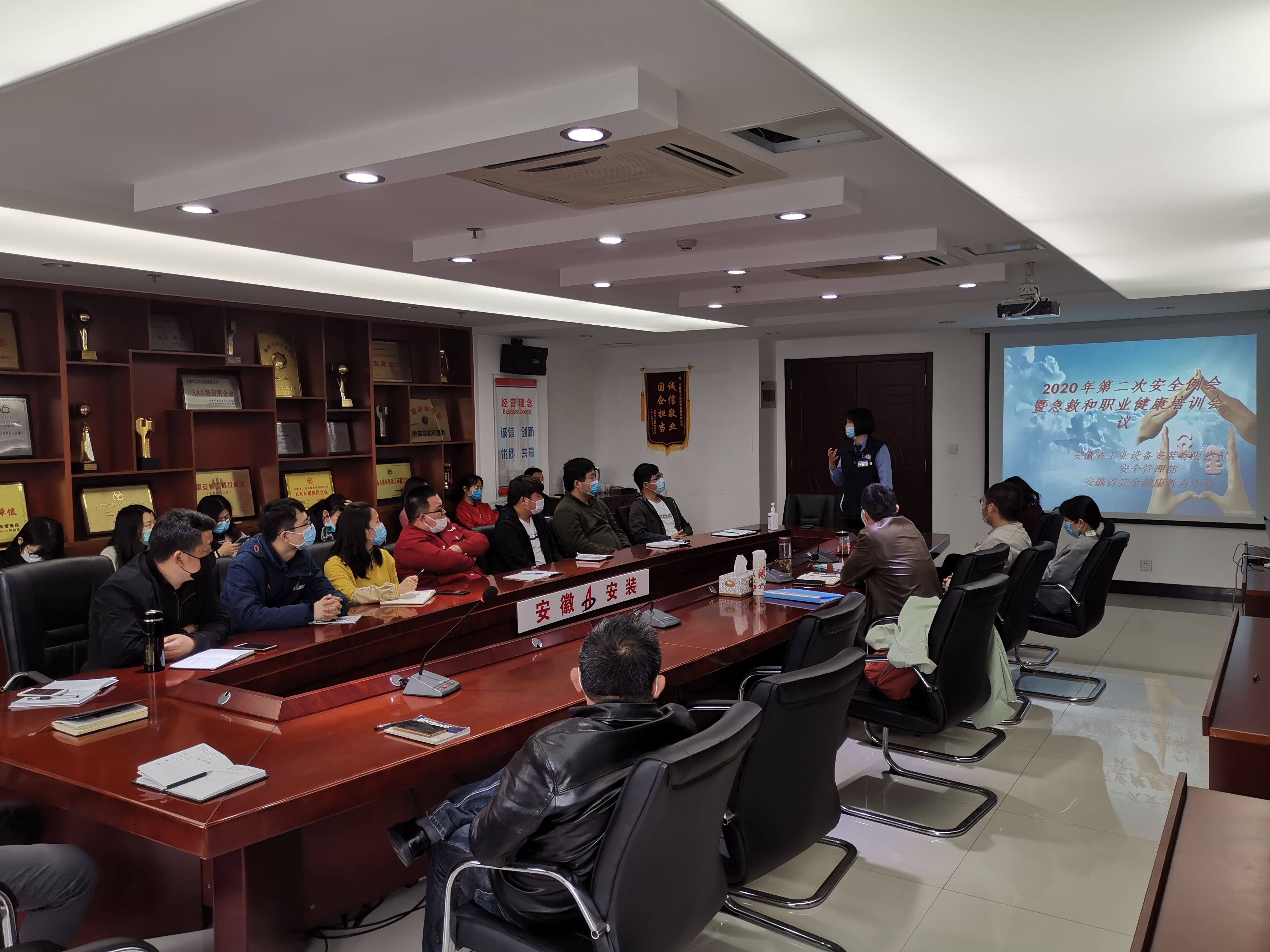 4月20日上午,安(an)(an)徽安(an)(an)裝公(gong)司(si)召開2020年(nian)第二次(ci)安(an)(an)全例會暨急救和職業健康培訓(xun)會議。副(fu)總(zong)經理(li)高飛、機關(guan)各部門相關(guan)人員、各分(fen)(fen)公(gong)司(si)分(fen)(fen)管經理(li)及安(an)(an)全科長,各項目部安(an)(an)全員參會。會議由安(an)(an)全管理(li)部副(fu)經理(li)蔣秀正主持。