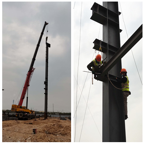 伴(ban)隨(sui)著隆隆的吊車轟鳴聲,閃爍的電焊(han)火花,縱橫交錯的鋼構架拼裝,一道道工序正在有條不紊的進行(xing)著……這是走進蕪湖宇培年產50萬方建筑工業化(hua)構件生產基地項目鋼結(jie)構工程,看到的一片繁忙(mang)施工景象(xiang)。因(yin)受疫情的影響,項(xiang)目部2020年3月(yue)5日(ri)接到總包的(de)復(fu)工復(fu)產通知,3月(yue)6日(ri)立(li)即組(zu)織召開復(fu)工會議,全面部(bu)署(shu)“防(fang)疫”舉措和(he)生產任務。在做好施(shi)工(gong)必備的人、材、機進場和安全教育及技(ji)術交底(di)后,3月11日,當第(di)一根27米高(gao)的廠房跨立(li)柱穩穩地吊裝成功后(hou),項目部全(quan)面啟動,按下搶工“快進鍵”。