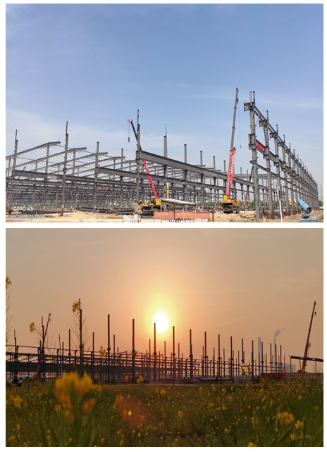 為進一步調動參建(jian)人員的積極(ji)性(xing)(xing)和創造性(xing)(xing),分(fen)公司組織開(kai)展項目“大干90天”勞動競賽,有(you)效(xiao)形成(cheng)了(le)一片“比、學、趕、幫、超”的火(huo)熱生(sheng)產(chan)局面。盡管3月底持續陰雨天氣,但絲(si)毫沒有影響到月施工進(jin)度,2#車間整(zheng)體框架已全(quan)部按時間節點圓滿完成。目前,1#車間安(an)裝正(zheng)在高速推(tui)進。