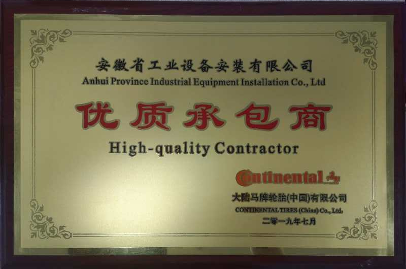 近日,大陸馬牌輪胎(中(zhong)國)有(you)限公司(si)授予安(an)徽安(an)裝公司(si)“優質(zhi)承包商”獎(jiang)牌和(he)“36萬(wan)安全(quan)工時”獎(jiang)杯(bei)。