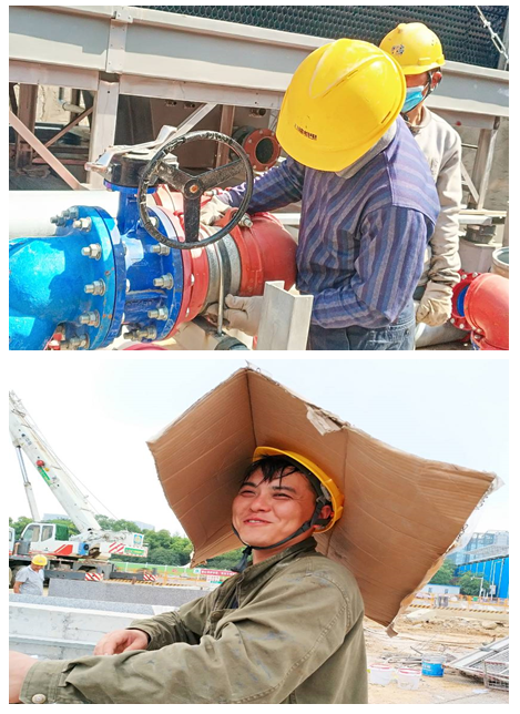 合肥市軌道交通3號線工程——冷(leng)卻塔(ta)冷(leng)凝(ning)水管道支(zhi)架U型卡固定和冷卻塔吊(diao)裝現(xian)場(chang)指揮人員(yuan)