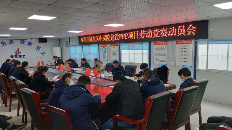 4月8日下午,阜陽市潁東區(qu)中醫(yi)院建(jian)設(she)PPP項目部召開2020年勞動(dong)競賽動(dong)員(yuan)會(hui)。公(gong)司(si)黨委書(shu)記(ji)、董事長胡六中,副總(zong)經(jing)理(li)高飛,紀委書(shu)記(ji)、工會(hui)主席李寬旭及公(gong)司(si)相關(guan)部門人員(yuan)、房建(jian)(裝飾)分公(gong)司(si)班(ban)子成員(yuan)及項目部員(yuan)工參會(hui),會(hui)議由(you)分公(gong)司(si)黨支部副書(shu)記(ji)張曼主持。