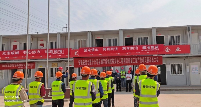 為(wei)確保年度(du)各項目(mu)目(mu)標任(ren)務順利完成,貫徹(che)落實(shi)集團和安裝公(gong)司兩級職代(dai)會及疫(yi)情防控、復工復產工作推進會精神,3月(yue)21日(ri)上午,安徽安裝召開(kai)蕪湖宇(yu)培裝配生(sheng)產基地項目(mu)“大干90天(tian)”勞動(dong)(dong)競(jing)賽(sai)動(dong)(dong)員會(hui)。公(gong)司黨委(wei)(wei)書記、董事長胡六中,紀委(wei)(wei)書記、工(gong)會(hui)主席(xi)李寬旭,合肥分公(gong)司領導班(ban)子成員、項目(mu)管理人員和(he)施工(gong)班(ban)組參加(jia)了競(jing)賽(sai)動(dong)(dong)員會(hui)。