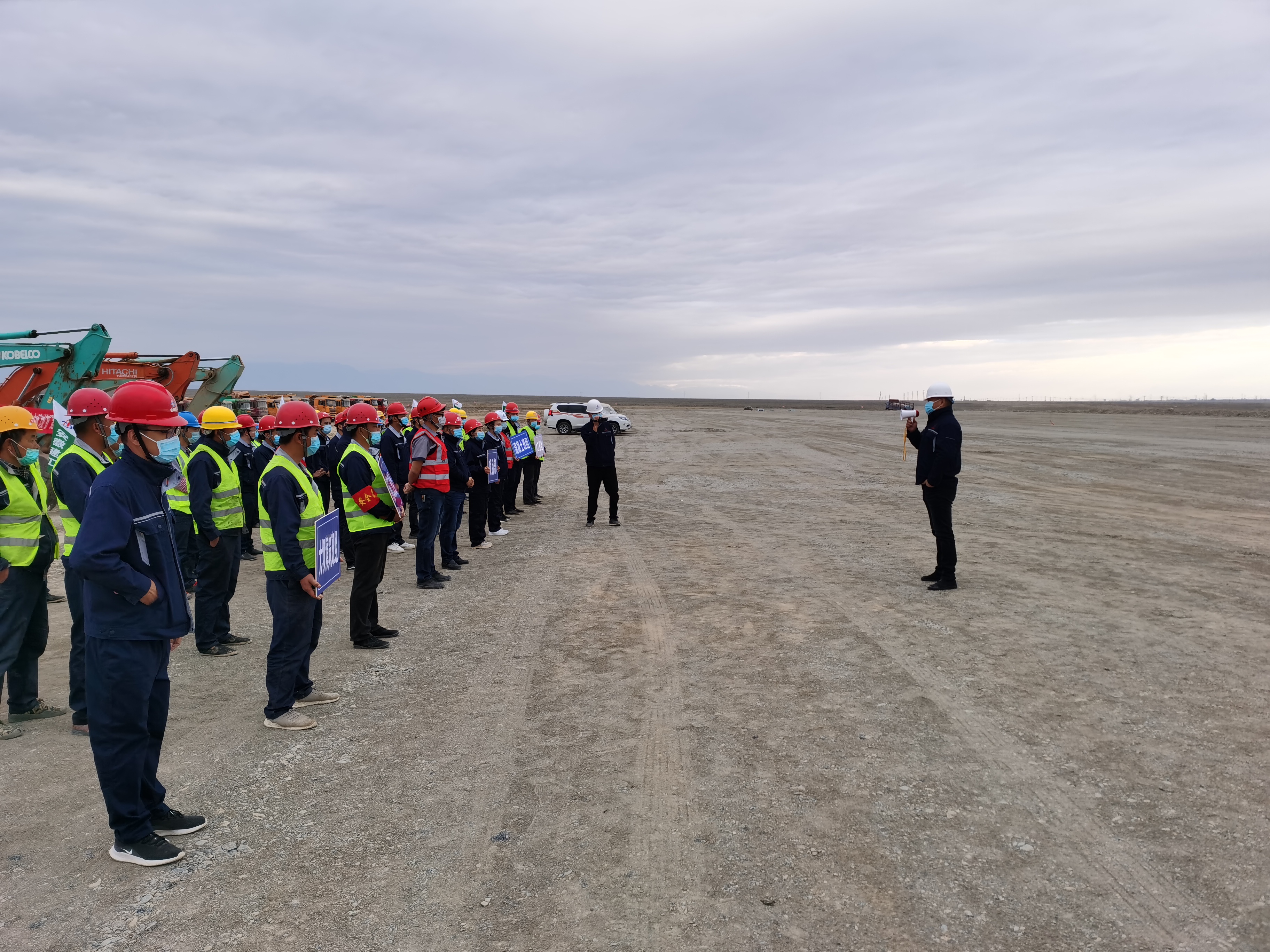 由(you)于(yu)疫情影響,項目開(kai)工日期(qi)延(yan)遲近兩個月,為進(jin)一(yi)步(bu)調動參建人員的積極(ji)性和(he)創(chuang)造性,5月(yue)6日(ri),項(xiang)目部開展“四比四創、大干90天”勞動(dong)競(jing)賽活動(dong),比(bi)(bi)施工(gong)進度(du),創最快建設速度(du);比(bi)(bi)工(gong)程質量,創優質工(gong)程;比(bi)(bi)安全文(wen)明,創安全生(sheng)產(chan)無事故;比(bi)(bi)成(cheng)本效益,創良好企(qi)業形象。以(yi)競(jing)賽促(cu)生(sheng)產(chan)、促(cu)安全、促(cu)管理(li)、促(cu)效益、促(cu)發(fa)展,有效形成(cheng)“比(bi)(bi)、學、趕、幫(bang)、超”的火熱生(sheng)產(chan)局面。5月(yue)份的烏蘇市,白天氣溫(wen)已達三十(shi)度(du)以上(shang),盡管(guan)如此,每一位(wei)參建人(ren)員每天堅持工作十(shi)四個小(xiao)時,偌大的施(shi)工現場(chang),近百輛(liang)工程機械(xie)緊張作業(ye),挖掘機、推土(tu)機、壓(ya)路機的轟(hong)鳴(ming)聲震耳欲聾、重型卡車(che)來回穿梭蕩起(qi)滾滾煙塵......截(jie)至(zhi)目(mu)前,蓄水池壩體填(tian)筑已(yi)完成232700m3,完成產值約(yue)3000萬元(yuan),實現節點任務滿(man)產超(chao)產,切實做到“兩(liang)手都要(yao)抓、兩(liang)手都(dou)要(yao)硬、兩(liang)戰都(dou)要(yao)贏(ying)”。