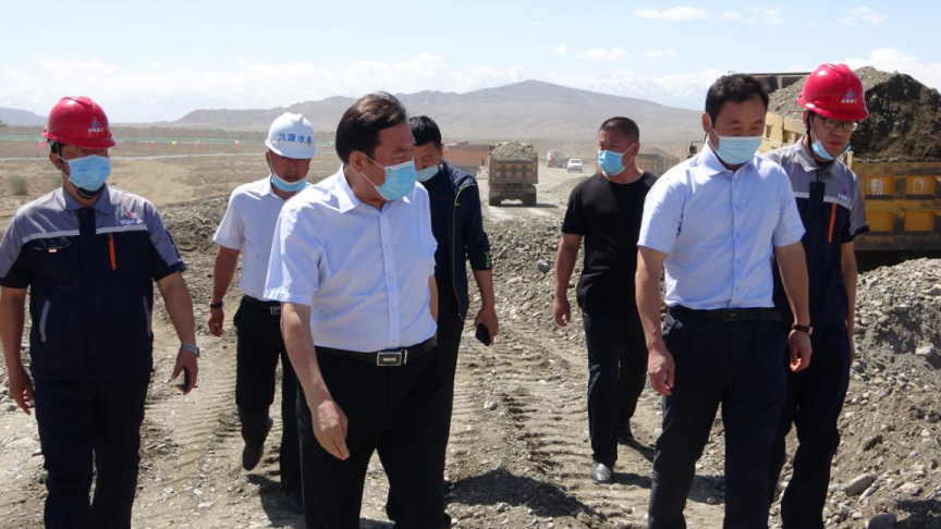 塔城地(di)區地(di)委委員(yuan)阿依丁·托(tuo)留汗等領導一(yi)行赴施工現場(chang)視(shi)察