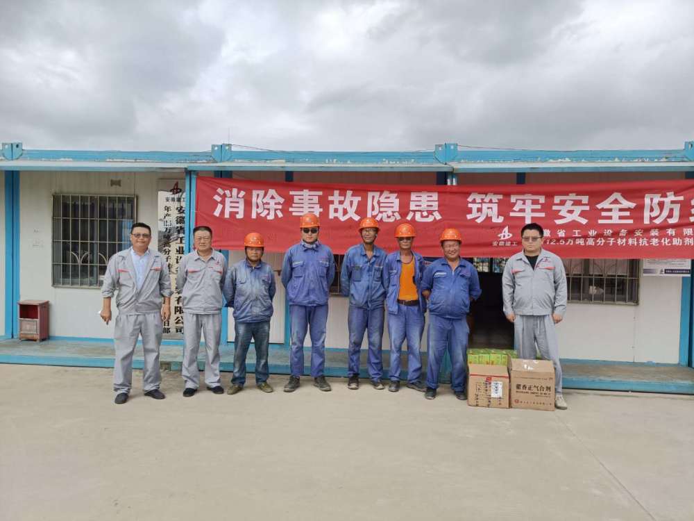 6月13日(ri),年產12.5萬(wan)噸高(gao)分子材料抗(kang)老化助(zhu)劑項(xiang)目(mu)部開展(zhan)了“送清涼(liang)”活動,為(wei)項目一線(xian)施工人(ren)員(yuan)送上了防暑降溫物(wu)品(pin),送去了夏日清涼,做好高溫天氣下一線施(shi)工人員的防(fang)暑降溫工作。
