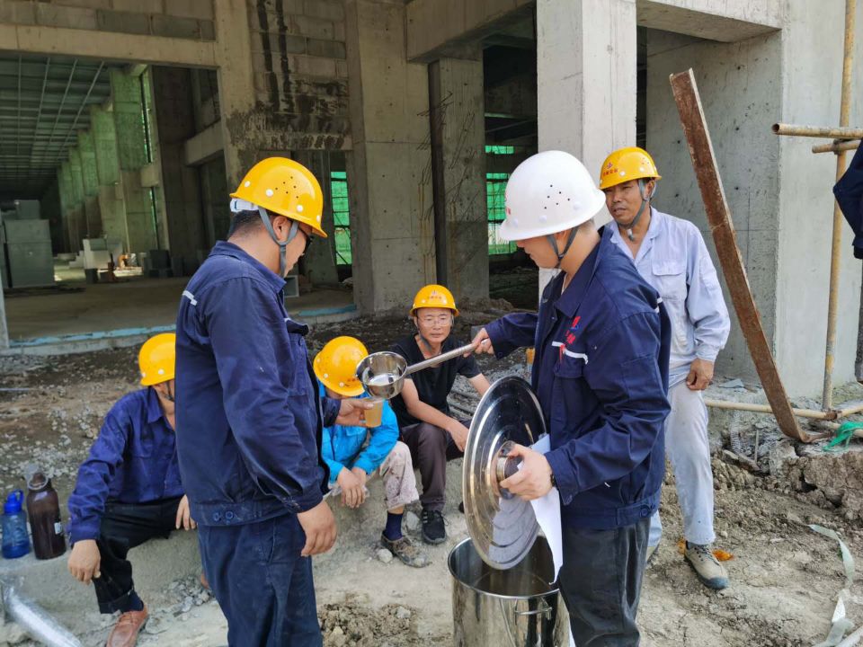 一(yi)是(shi)認真做好防暑(shu)降溫工作。及(ji)時召開項目專(zhuan)題會(hui)議,全面落實防暑(shu)降溫及(ji)勞(lao)動保護(hu)措施。項目部(bu)為(wei)各施工班組配(pei)發了人丹(dan)、十滴水(shui)、風油精等防暑(shu)降溫藥品,每(mei)天(tian)定時將(jiang)綠豆(dou)湯、茶水(shui)等送到各施工點,確保飲食(shi)及(ji)環(huan)境衛生,并合(he)理調(diao)整(zheng)作業時間,確保施工人員“清涼”到位。