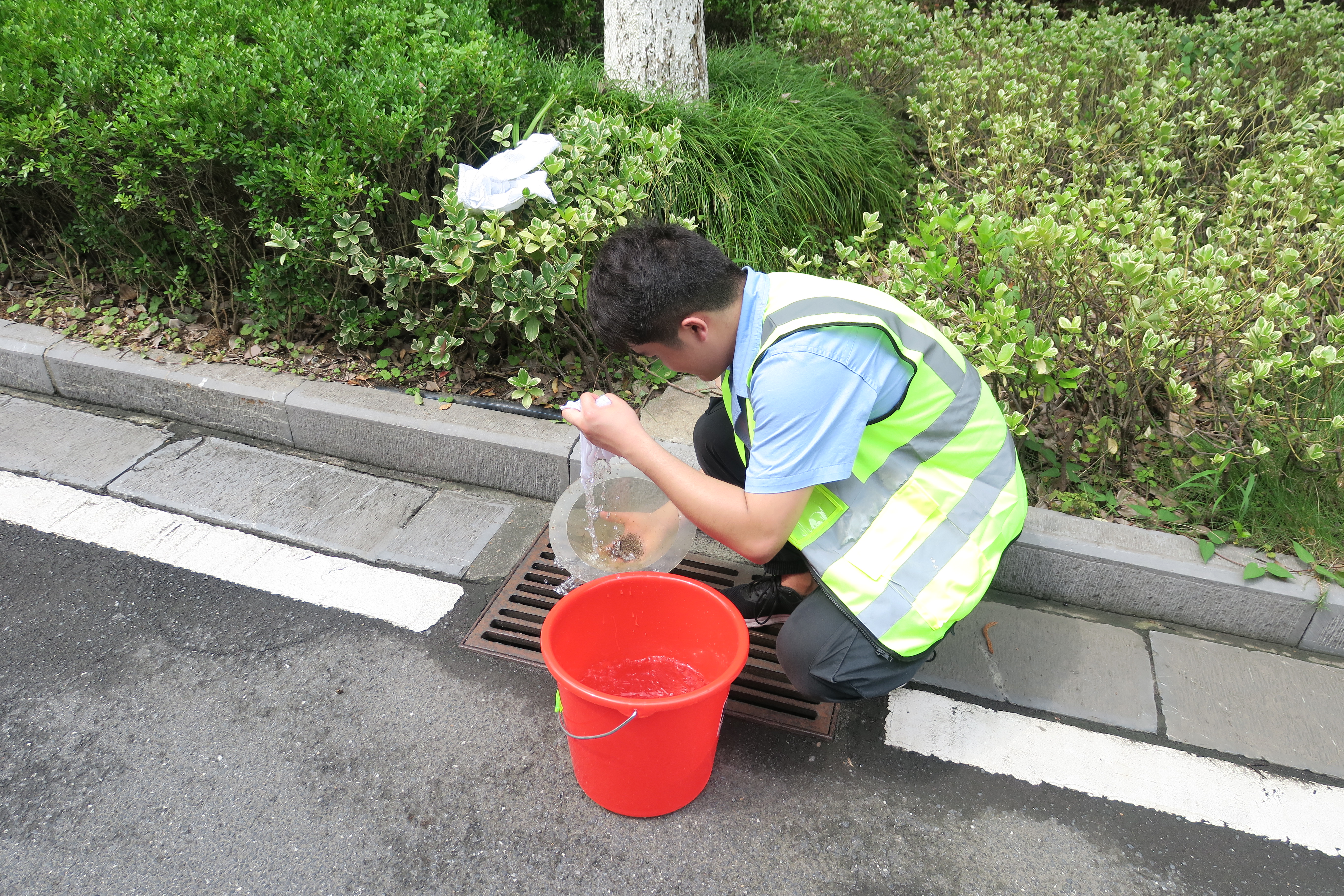 到達項目現(xian)場(chang)后,大家迅速分組,每組都由(you)一名有(you)施(shi)工(gong)經驗的(de)老員工(gong)帶領。在項目部負責人(ren)的(de)統一指(zhi)揮下,大家帶好安全護(hu)具(ju)和工(gong)作用(yong)具(ju),進入施(shi)工(gong)現(xian)場(chang)開始了緊張的(de)勞動。此時室(shi)外氣溫達到38攝氏度(du),但大家絲毫(hao)不懈怠、不畏懼,頭(tou)頂烈日為路燈刷油漆、洗(xi)燈罩、換燈泡,竭心盡力的完成各項工作。