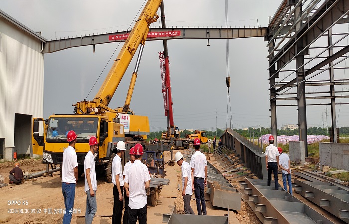 伴隨著現場人(ren)員(yuan)緊張而又激動的(de)(de)心情,第一拼(pin)40米(mi)大跨度的(de)(de)重型(xing)橫梁徐徐升起,并精(jing)準吊裝就位,這意(yi)味著經過100多(duo)天的(de)(de)奮戰后,蕪(wu)湖項(xiang)目(mu)鋼結構工(gong)程跨越了施工(gong)難度節點(dian)和取得了階(jie)段性突破(po),同時(shi)標(biao)志著該項(xiang)目(mu)鋼結構工(gong)程最(zui)后的(de)(de)主體完工(gong)已邁出至關重要的(de)(de)一步。