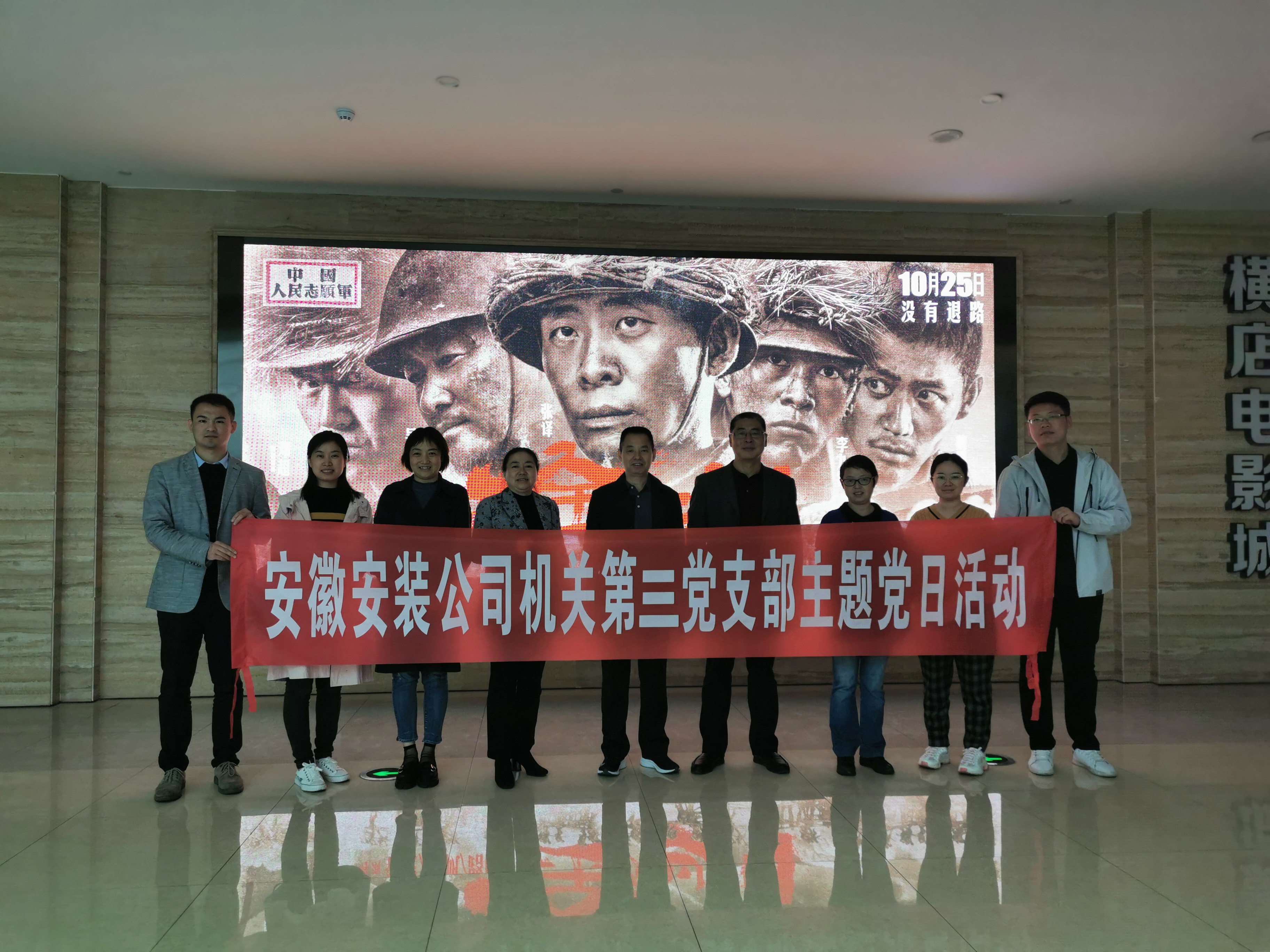 為(wei)紀念抗美援朝偉大戰爭,向(xiang)中(zhong)國(guo)人(ren)民志愿軍(jun)致敬,2020年10月(yue)26日,機關(guan)第三黨支部組織全體黨員觀看抗(kang)美(mei)援朝主(zhu)題電影(ying)《金剛川》。公司(si)黨委書(shu)記、董事長(chang)胡(hu)六(liu)中,副總(zong)經理李原及總(zong)會計師(shi)張元斌以(yi)普通黨員身份參加。