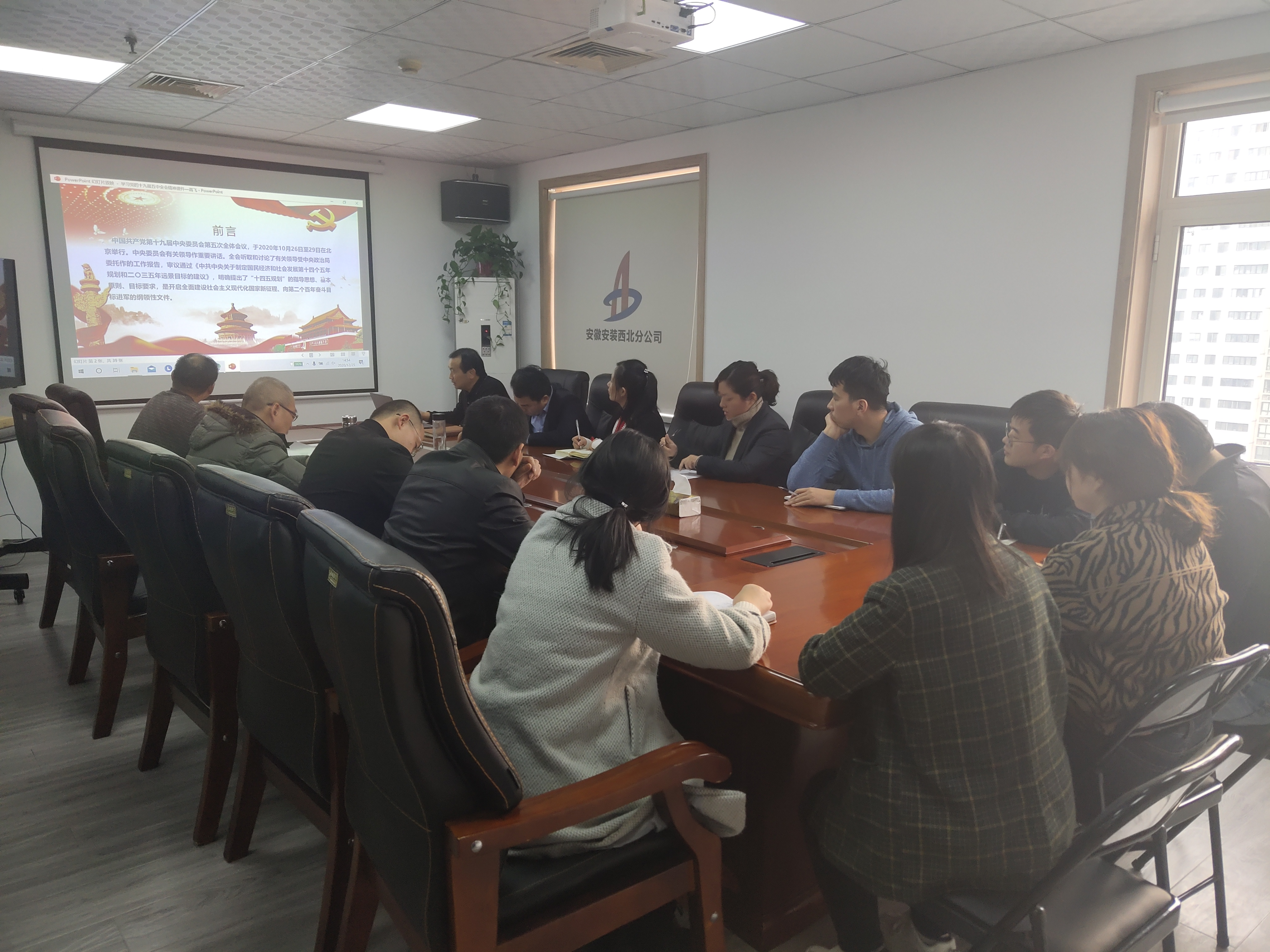 12月25日下(xia)午,公司副總(zong)經理(li)高飛赴西(xi)北分公司,以《學習黨的十(shi)九屆五中全會(hui)精神》為(wei)題,為(wei)分公司領導班(ban)子成(cheng)員、黨員、團(tuan)員青年講(jiang)授了一堂(tang)真(zhen)實生動、寓(yu)意深遠的專題黨課(ke)。