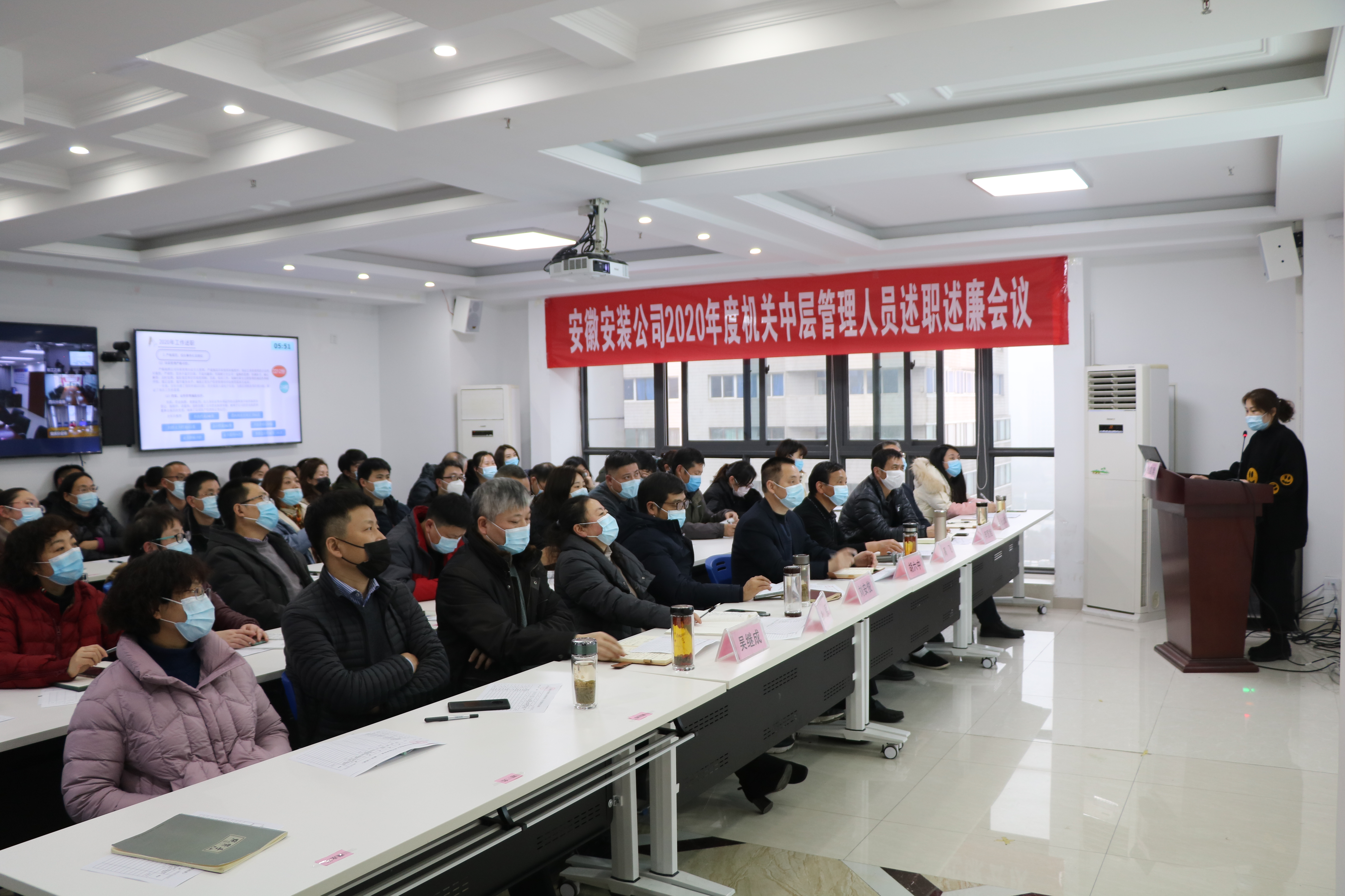 1月25日下午,安(an)徽安(an)裝(zhuang)公(gong)司(si)召(zhao)開2020年度機關中層(ceng)管(guan)理(li)人(ren)員(yuan)述職述廉會議。公司領導班子成員(yuan)、機關中層(ceng)管(guan)理(li)人(ren)員(yuan)、分公司黨政負責人(ren)、機關部門員(yuan)工(gong)代表共60余人參加會(hui)(hui)議(yi),會(hui)(hui)議(yi)采取(qu)現場加視頻(pin)會(hui)(hui)議(yi)方式召開,公(gong)司黨委書記、董(dong)事長胡六中主持(chi)會(hui)(hui)議(yi)。