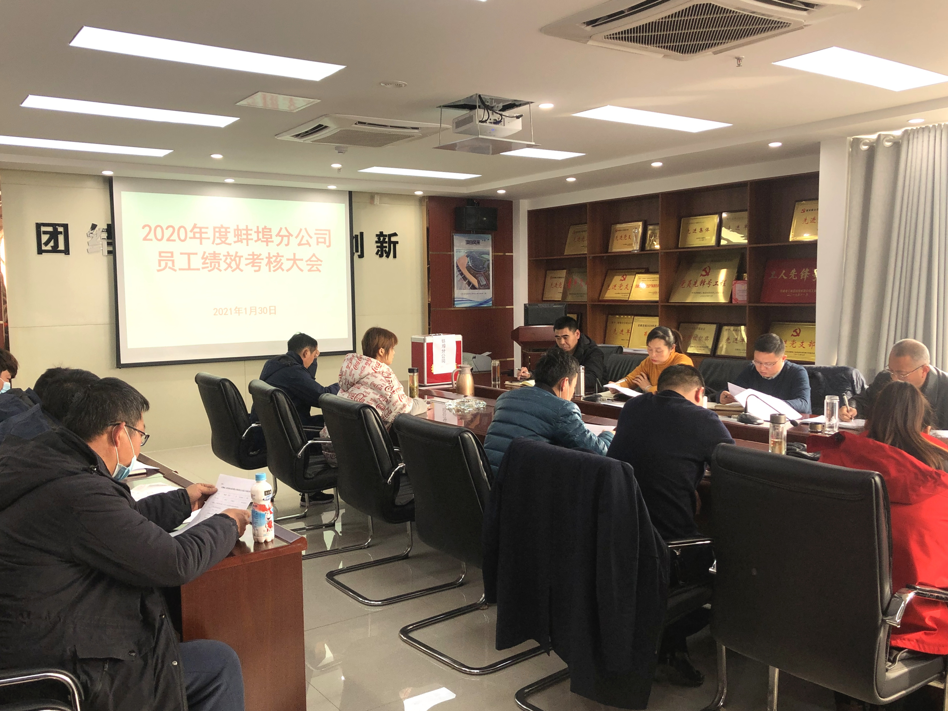 2021年(nian)1月30日(ri),蚌埠分(fen)公司召開(kai)2020年(nian)度員工績效考核大會。分(fen)公司全(quan)體職工參(can)加(jia)。