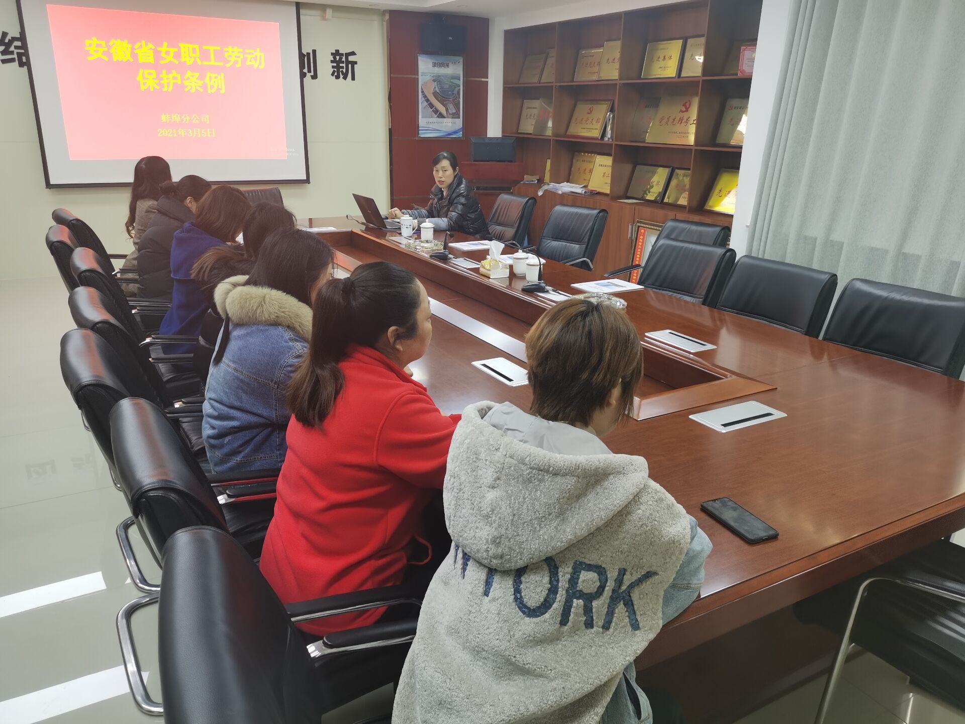 陽(yang)春三(san)月,百草初(chu)醒,萬(wan)木崢嶸,值(zhi)此(ci)第“111”個三八國際(ji)勞動(dong)婦女節來臨之際(ji),3月5日下午,蚌埠分公(gong)司(si)工會開展了《女職(zhi)工勞動(dong)保護特(te)別(bie)規定》知(zhi)識講座活動(dong)。講座由(you)分公(gong)司(si)黨(dang)支(zhi)部書(shu)記(ji)程茂麗組織,分公(gong)司(si)全體女職(zhi)工聆(ling)聽講座。