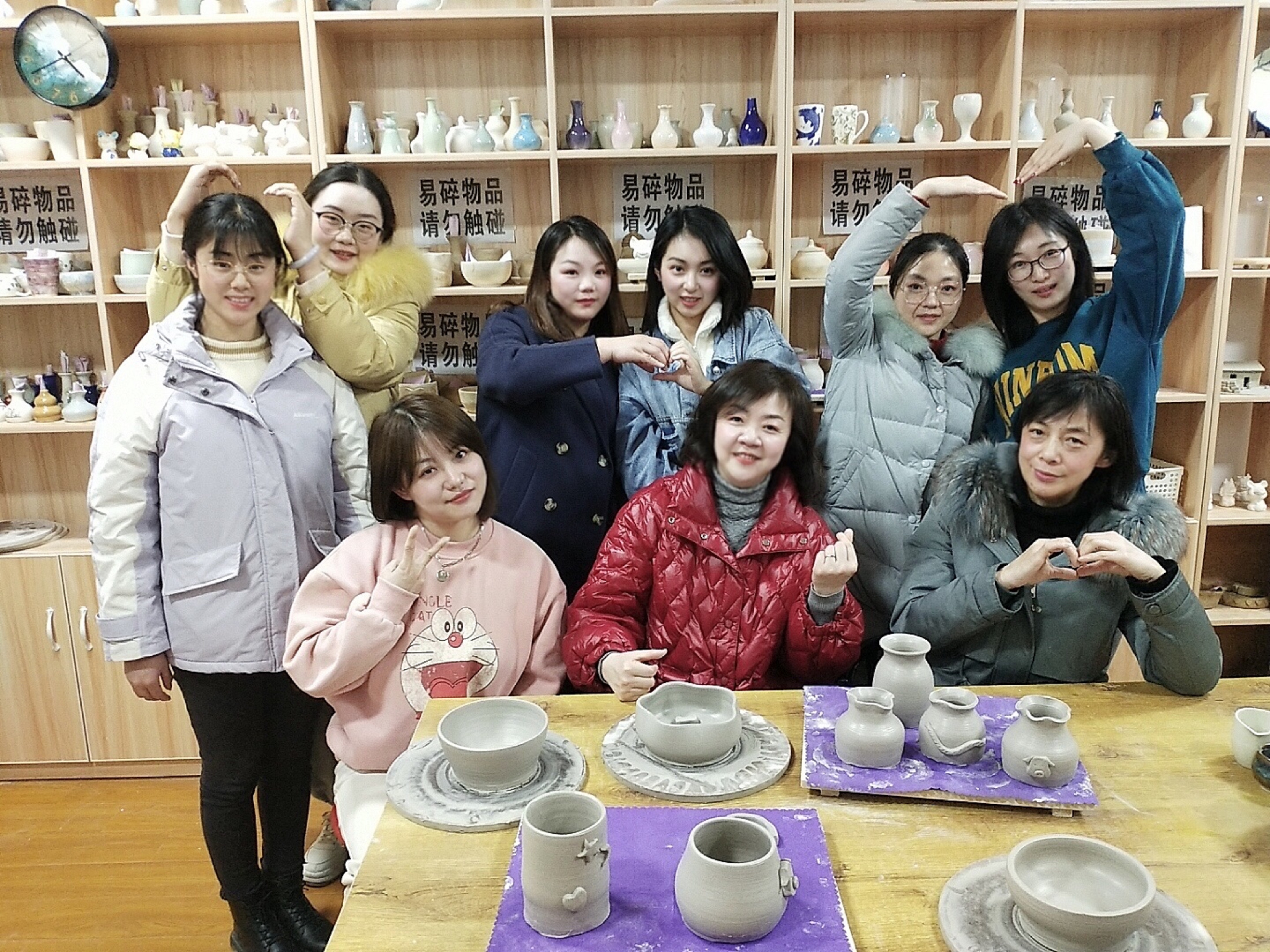 在拍攝創意(yi)照(zhao)片活動中,女職(zhi)工(gong)們(men)身穿(chuan)工(gong)作服,手拿慶祝節(jie)日圖(tu)(tu)片,展現(xian)女職(zhi)工(gong)風采。同(tong)(tong)時,以手臂為造型,共同(tong)(tong)組成心型圖(tu)(tu)案,寓意(yi)同(tong)(tong)心啟程“十四五”,為公司發展助力。在之后開展的(de)手(shou)工陶(tao)藝(yi)活動(dong)(dong)中,女(nv)職工們在陶(tao)藝(yi)制(zhi)作(zuo)師的(de)指導下,利(li)用轉動(dong)(dong)的(de)輪盤,動(dong)(dong)手(shou)將瓷土拉制(zhi)成各種形狀(zhuang)的(de)拉胚,并對陶(tao)藝(yi)進行塑型(xing)雕花(hua),制(zhi)作(zuo)出一件件精美的(de)陶(tao)藝(yi)作(zuo)品。