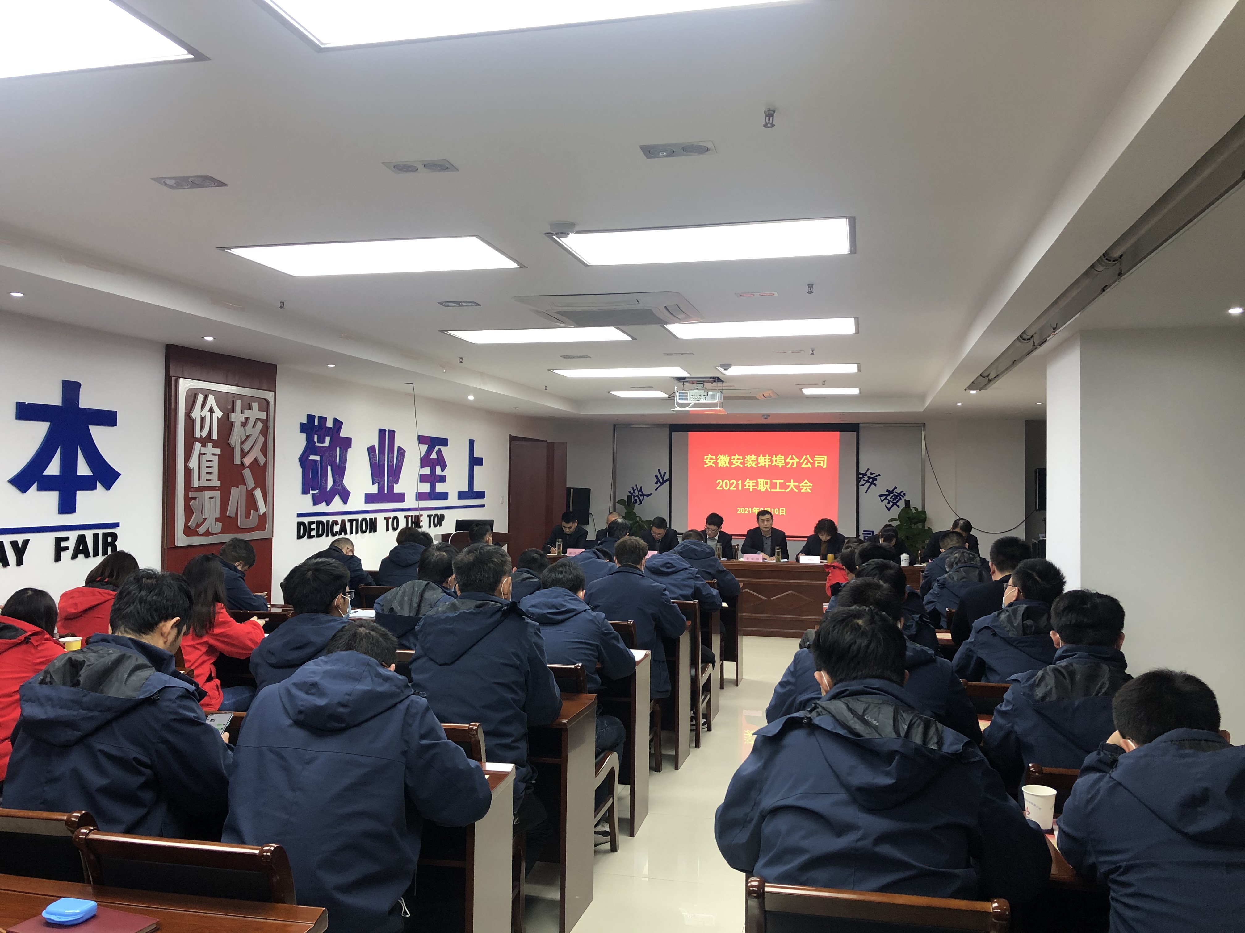 3月10日下午,蚌埠分公司(si)召(zhao)開2021年度職工(gong)大會(hui),安徽安裝公司(si)紀委書(shu)(shu)記(ji)(ji)、工(gong)會(hui)主席李(li)寬旭,人力資(zi)源部經理、機關第三黨(dang)支(zhi)部書(shu)(shu)記(ji)(ji)王敏及黨(dang)委辦公室主管楊駿輝到會(hui)指導。分公司(si)班(ban)子(zi)成(cheng)員(yuan)及全(quan)體(ti)員(yuan)工(gong)參加(jia)會(hui)議,會(hui)議由分公司(si)黨(dang)支(zhi)部書(shu)(shu)記(ji)(ji)程茂麗主持。