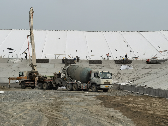 壩體混(hun)凝(ning)土面板(ban)澆筑施工現場