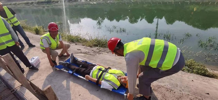 固(gu)鎮三八河景觀工程項目部(bu)根(gen)據(ju)本項目臨(lin)近水(shui)(shui)邊(bian)的作業特點(dian)開(kai)展了防溺(ni)水(shui)(shui)應急(ji)救(jiu)援演(yan)練,模擬現場人員發生溺(ni)水(shui)(shui),項目部(bu)立(li)即(ji)(ji)組(zu)織人力搶救(jiu)上岸。立(li)即(ji)(ji)清除口(kou)、鼻(bi)中(zhong)的污泥、雜(za)草,保持呼吸(xi)道通暢。并進行胸外按壓(ya)及(ji)人工呼吸(xi),120救(jiu)護車及(ji)時到(dao)(dao)場后送往(wang)醫院搶救(jiu),通過防溺(ni)水(shui)(shui)演(yan)練增強了項目部(bu)全(quan)體員工遇(yu)到(dao)(dao)緊急(ji)情況時的應變能力和(he)實際操作救(jiu)援處置能力。