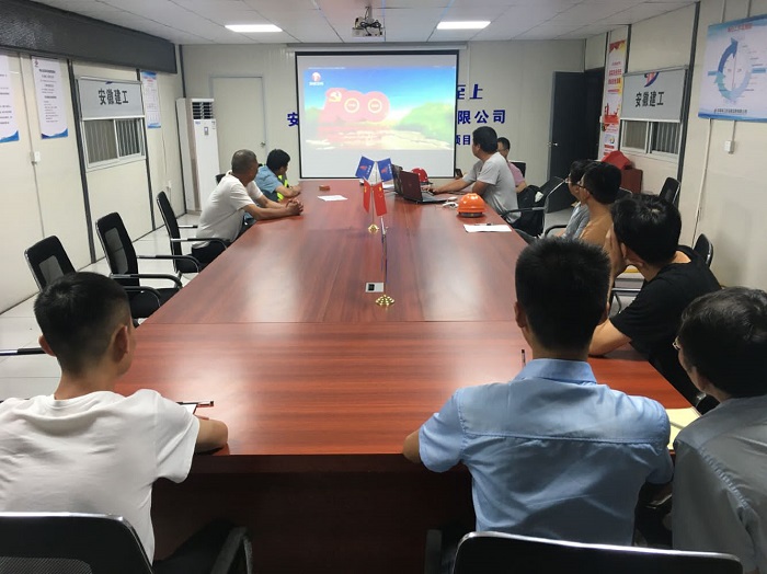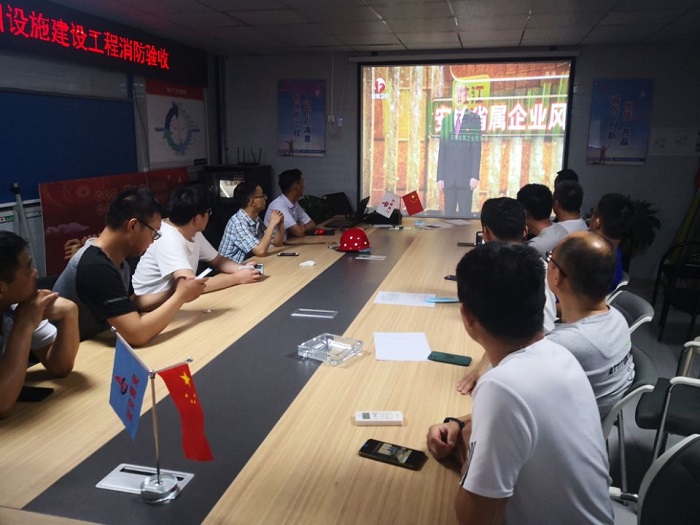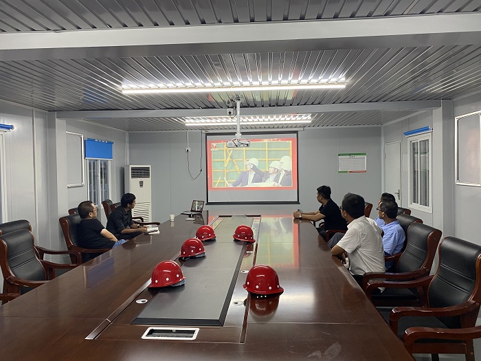 房建(裝飾)分公司壹石通化學科技廠房項(xiang)目(mu)部集中觀看節目