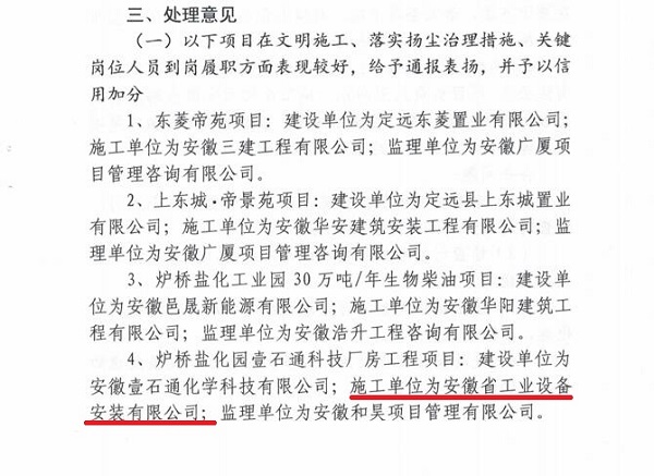 2021年8月10日(ri)上(shang)午(wu),定遠縣住房和(he)城鄉建(jian)設局領導蒞臨壹石(shi)通項目檢查指導工(gong)作,并于2021年8月18日(ri)下文對壹石(shi)通項目表(biao)彰。