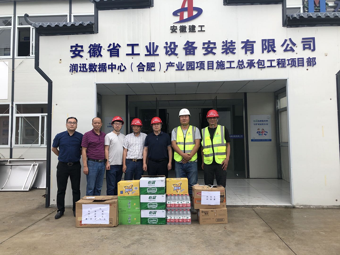 烈日(ri)(ri)炎炎,酷暑難當,6月16日(ri)(ri),房建(jian)(裝(zhuang)飾)分公司(si)黨支部書記王偉(wei)攜分公司(si)工(gong)(gong)程管理部來到潤迅(xun)數(shu)據中心(合肥)產業園項目,看(kan)(kan)望和慰問奮戰在一線的員(yuan)工(gong)(gong),為(wei)他(ta)們送去(qu)仁丹(dan)、藿香正氣口服(fu)液、十(shi)滴水(shui)、飲料(liao)、藥品(pin)等防暑降溫物品(pin),實地察看(kan)(kan)了項目工(gong)(gong)地和職工(gong)(gong)生活區,并與(yu)項目同(tong)志進行(xing)了座談交流。