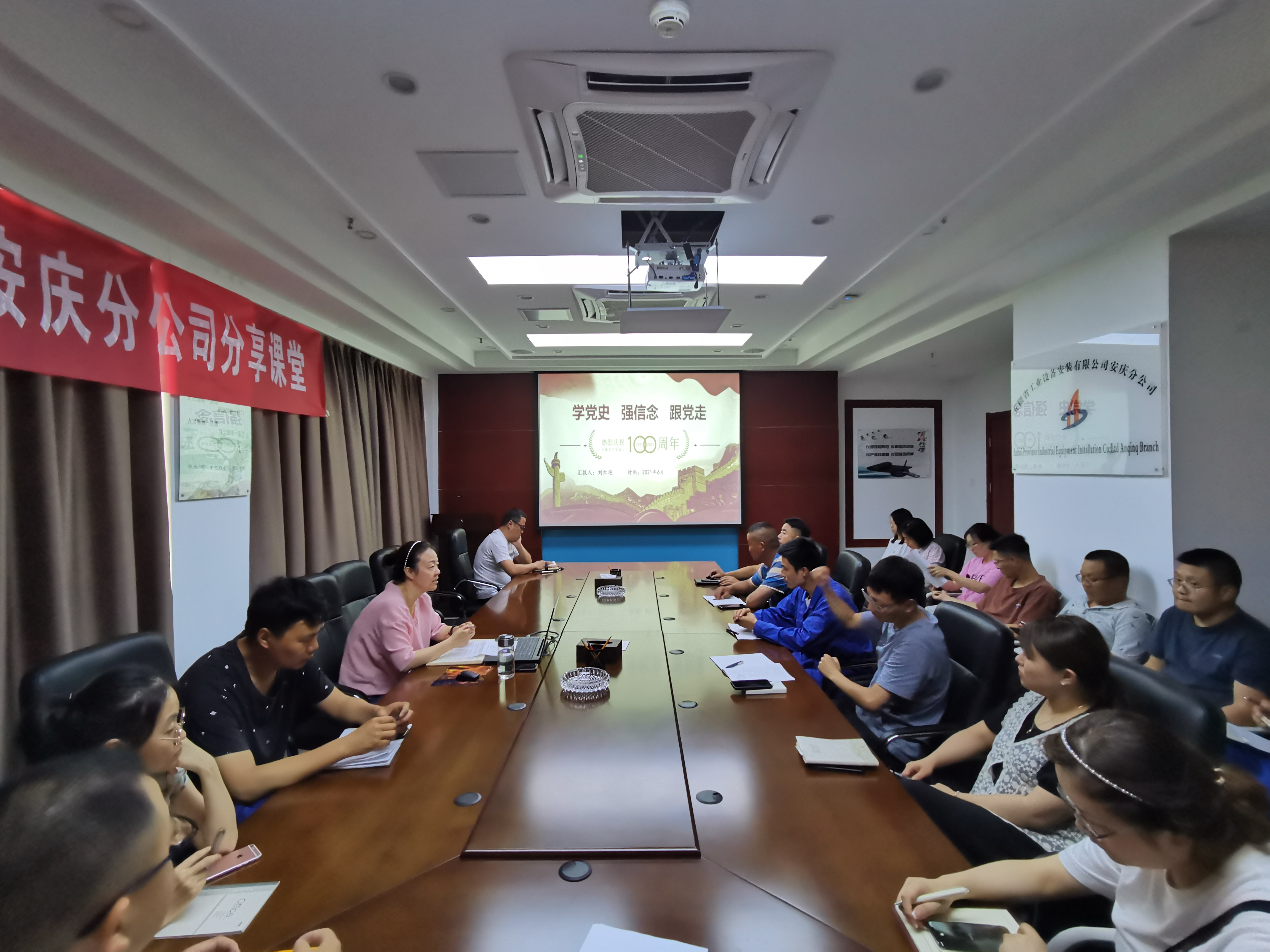 中(zhong)國共產黨(dang)(dang)(dang)即將迎來百年華誕,切實推動分(fen)(fen)公(gong)司(si)黨(dang)(dang)(dang)史學習(xi)教育(yu)往深里(li)走、往心里(li)走、往實里(li)走,5月28日下午,安慶分(fen)(fen)公(gong)司(si)在機(ji)關會議室開展“學黨(dang)(dang)(dang)史、強信念、跟黨(dang)(dang)(dang)走”分(fen)(fen)享課堂(tang)活動。此次(ci)分(fen)(fen)享課堂(tang)由分(fen)(fen)公(gong)司(si)黨(dang)(dang)(dang)支部(bu)書記(ji)劉紅(hong)艷主(zhu)持并授課,分(fen)(fen)公(gong)司(si)全體員工參加。