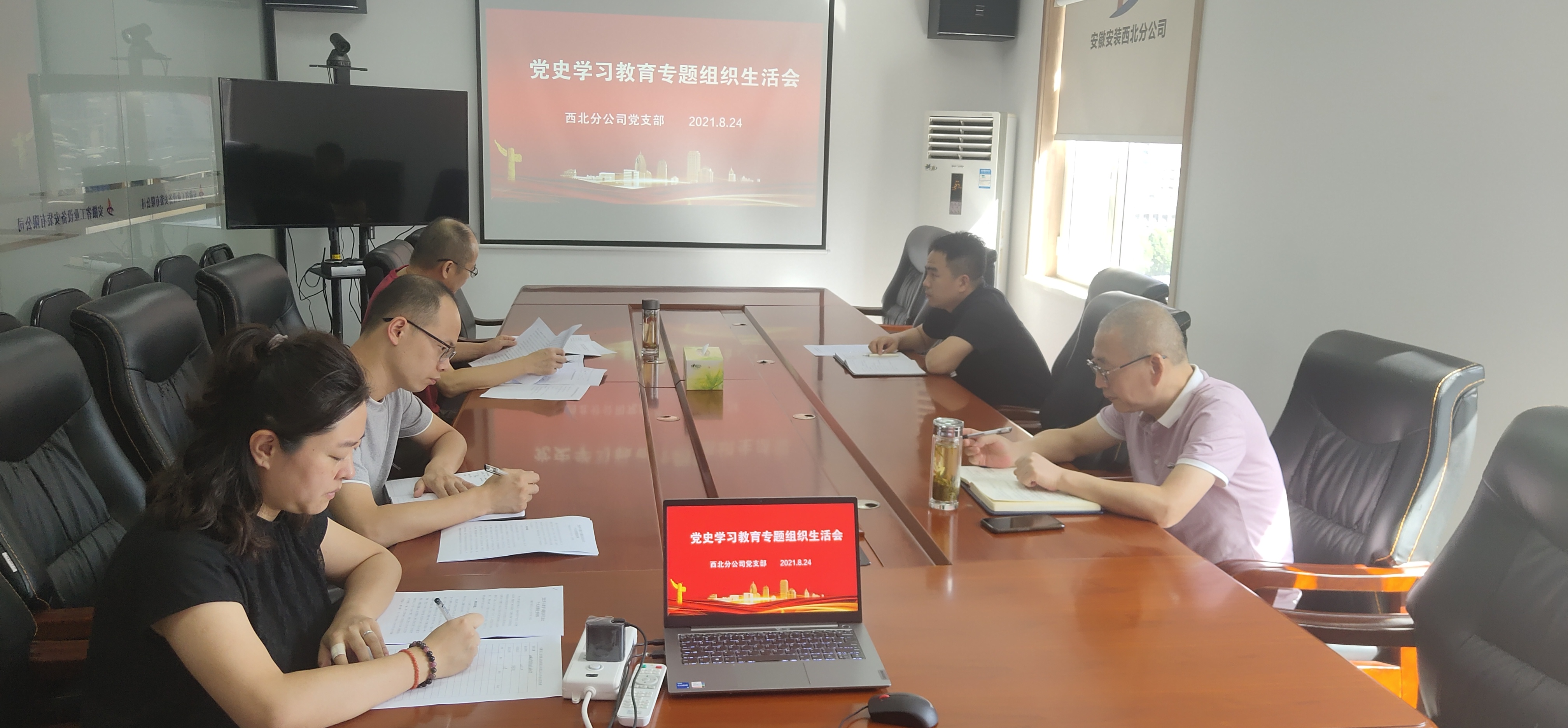8月24日下(xia)午,西北分(fen)公司黨支部召開黨史學習教育專題組(zu)織生活會(hui)(hui),分(fen)公司領(ling)導班子成員、全(quan)體(ti)黨員參(can)會(hui)(hui),會(hui)(hui)議由黨支部書記江輝主持(chi)。