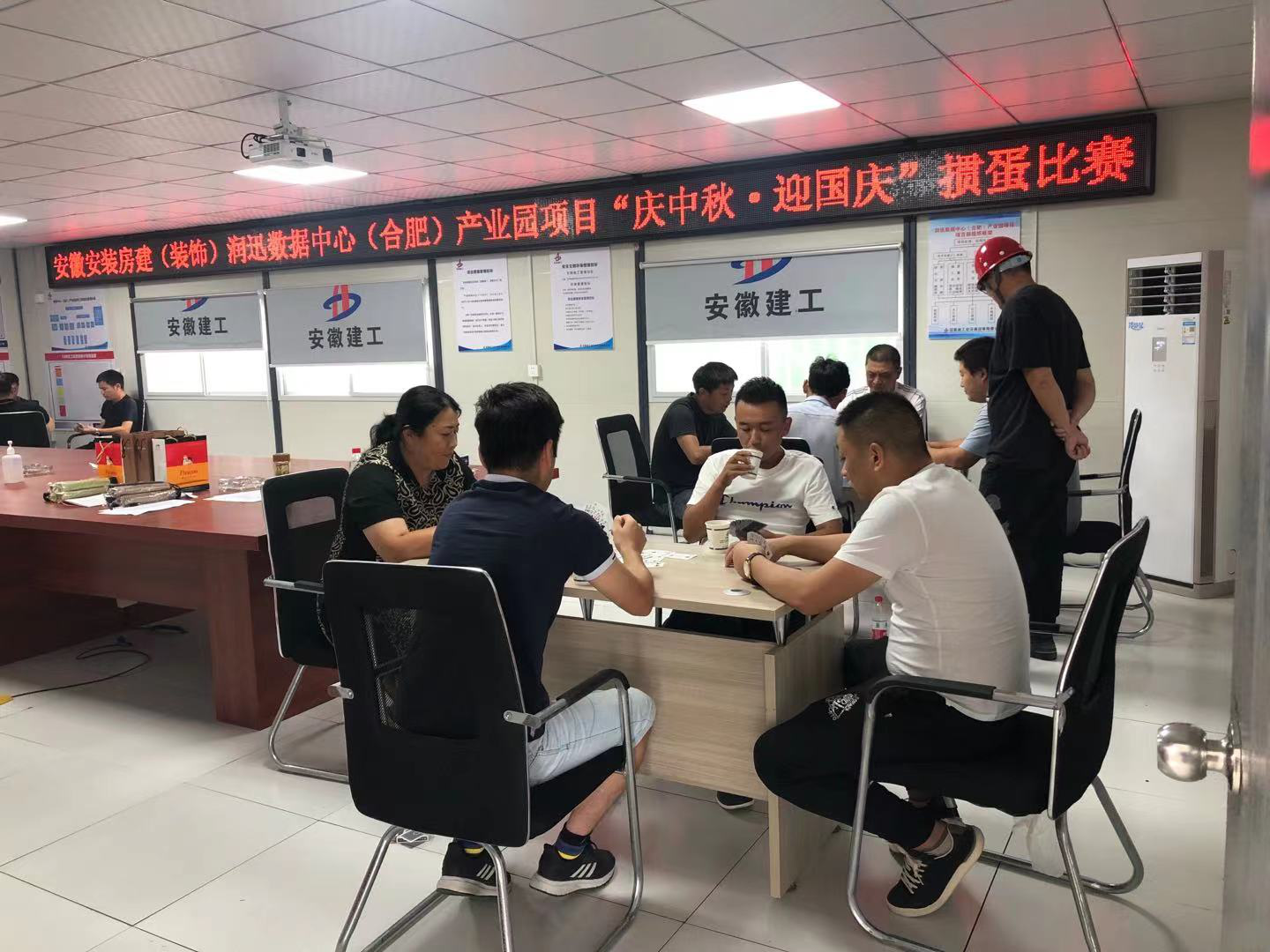 為豐(feng)富項(xiang)(xiang)目部員工的業(ye)余文化生活,營造員工健康快樂的良好工作氛圍,9月20日(ri)下午,房建(jian)(裝飾)分(fen)公司潤(run)迅數據中心(合肥)產(chan)業(ye)園項(xiang)(xiang)目舉辦了“歡樂中秋·喜迎國慶(qing)””摜(guan)蛋”比賽。項(xiang)(xiang)目部全體成(cheng)員及各(ge)分(fen)包隊計16名員工參加了本次比賽。