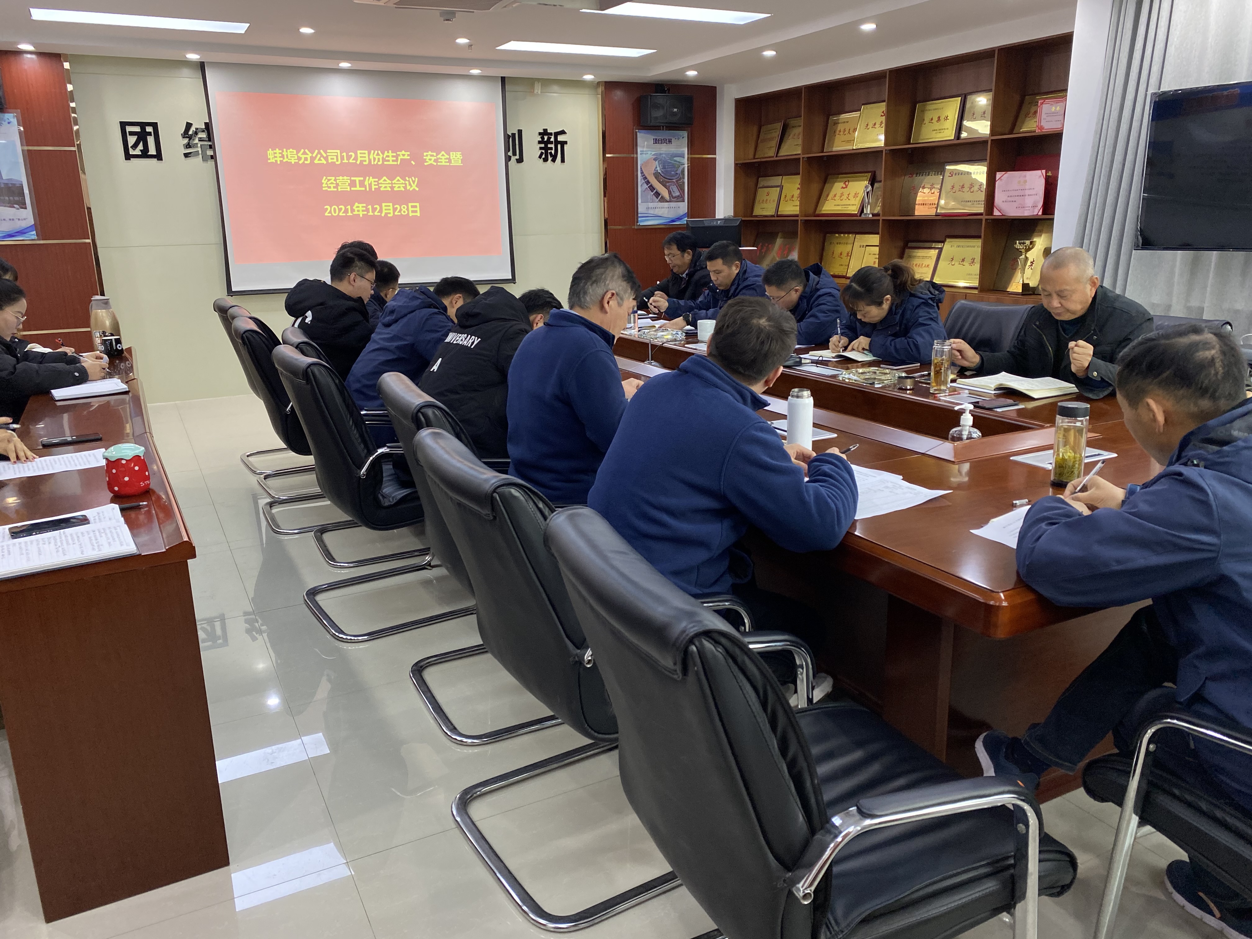 12月28日上午,蚌(bang)埠分(fen)公司組織召開2021年12月份生產、安全暨經(jing)營工(gong)作會(hui)議,分(fen)公司領(ling)導班子(zi)成員(yuan)、部(bu)門負責(ze)人(ren)、各在建項(xiang)目經(jing)理(li)及工(gong)程管理(li)部(bu)全體員(yuan)工(gong)參(can)會(hui),會(hui)議由分(fen)公司副經(jing)理(li)郭洋主持。