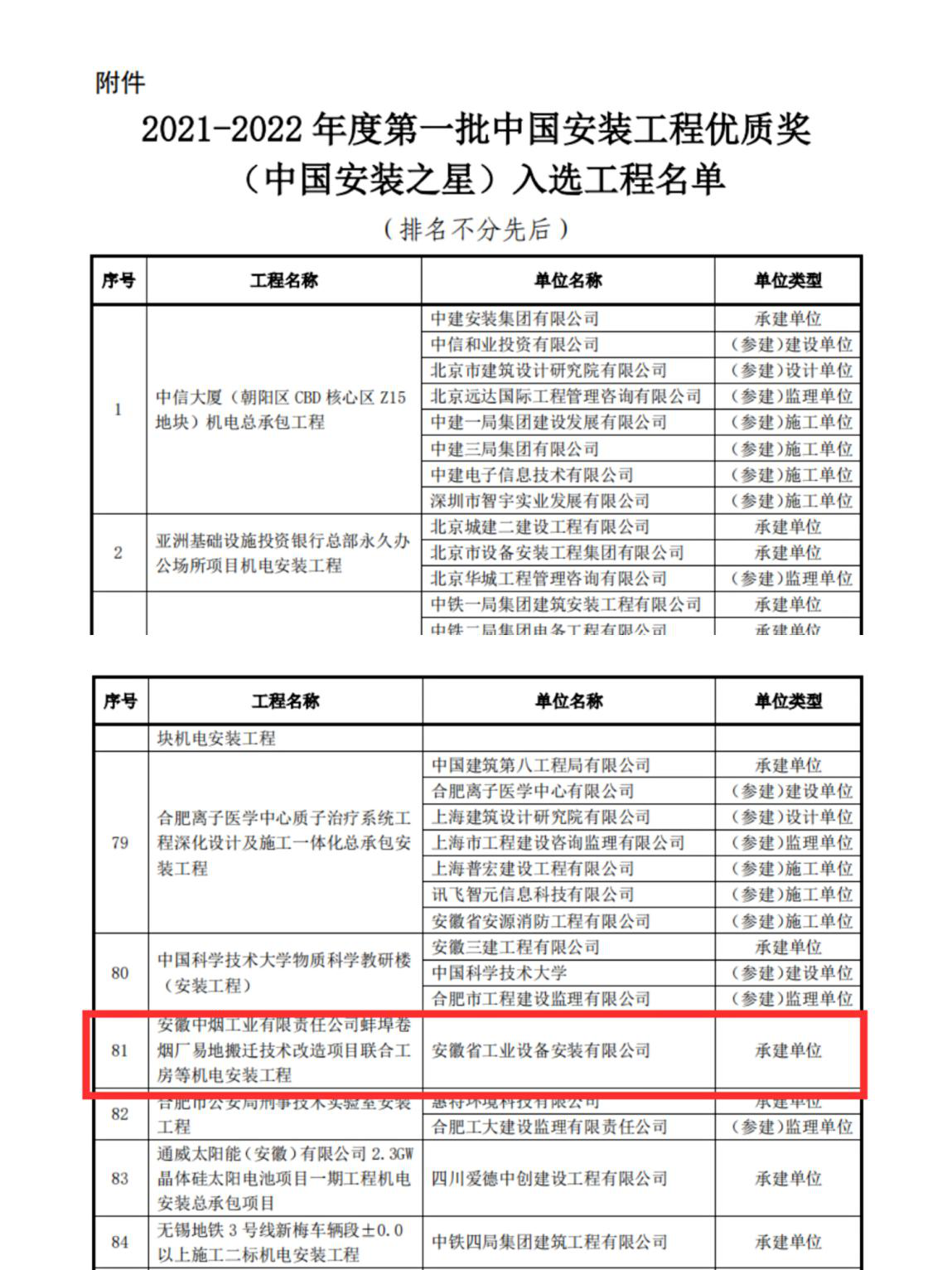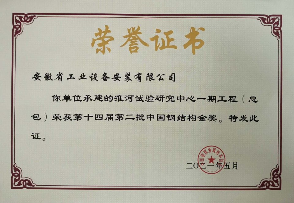 2021年公司首次一年內獲得兩項國(guo)(guo)(guo)家級優質工(gong)程(cheng)(cheng)獎(jiang)(jiang),即中國(guo)(guo)(guo)鋼結構金(jin)獎(jiang)(jiang)、中國(guo)(guo)(guo)安裝工(gong)程(cheng)(cheng)優質獎(jiang)(jiang)(安裝之星)。
