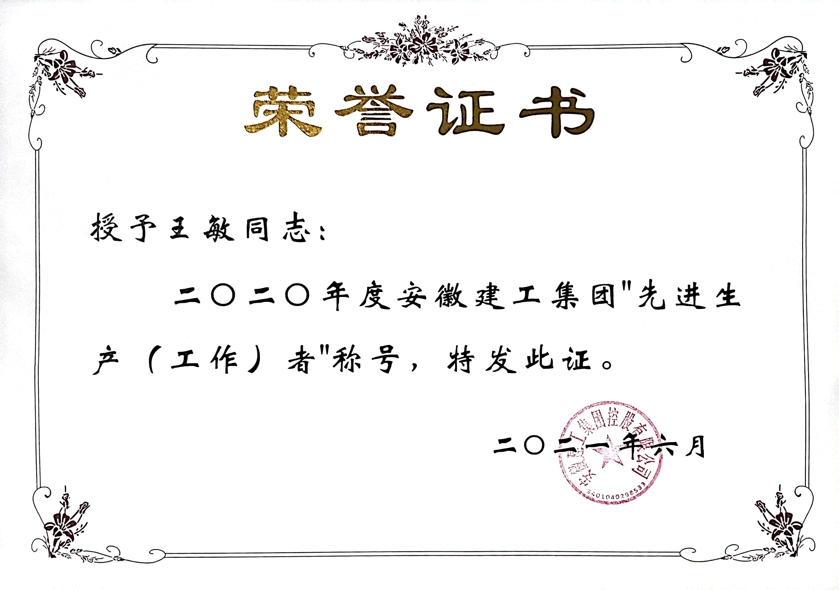 在工(gong)(gong)作(zuo)(zuo)作(zuo)(zuo)風上,王敏(min)一貫堅持對(dui)自(zi)(zi)己高標準嚴(yan)要(yao)求,腳踏實(shi)地(di),勤(qin)奮敬(jing)業,認(ren)真細致,勤(qin)于思考,盡心盡責(ze),主動、積極地(di)做(zuo)好(hao)每(mei)一項工(gong)(gong)作(zuo)(zuo),認(ren)真履行崗位職(zhi)責(ze)。她(ta)時常告(gao)誡自(zi)(zi)己要(yao)以德服人,以身作(zuo)(zuo)則,并在實(shi)際工(gong)(gong)作(zuo)(zuo)中努力(li)實(shi)踐著這一思想 ,注重自(zi)(zi)己的一言一行,公正、客觀,一切從大局出發,不(bu)謀私(si)利,不(bu)圖己便,廉潔自(zi)(zi)律,做(zuo)到(dao)自(zi)(zi)重、自(zi)(zi)省(sheng)、自(zi)(zi)警和自(zi)(zi)勵。2021年,王敏(min)由于出色的工(gong)(gong)作(zuo)(zuo)成績,被評為“安(an)徽建(jian)工(gong)(gong)集團(tuan)2020年度先進生產(工(gong)(gong)作(zuo)(zuo))者”,她(ta)說,這是集團(tuan)對(dui)她(ta)過去工(gong)(gong)作(zuo)(zuo)的肯定(ding),也是對(dui)她(ta)未(wei)來工(gong)(gong)作(zuo)(zuo)的要(yao)求。