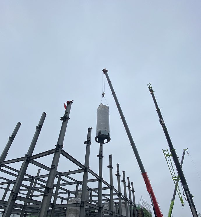 十余噸的(de)罐體在(zai)吊車的(de)牽引(yin)下緩緩升起(qi),小心(xin)翼翼,精準前往指定(ding)基礎,施工人員進行(xing)固定(ding)矯(jiao)正(zheng)...30多臺工業用罐就這(zhe)樣矗立起(qi)來。