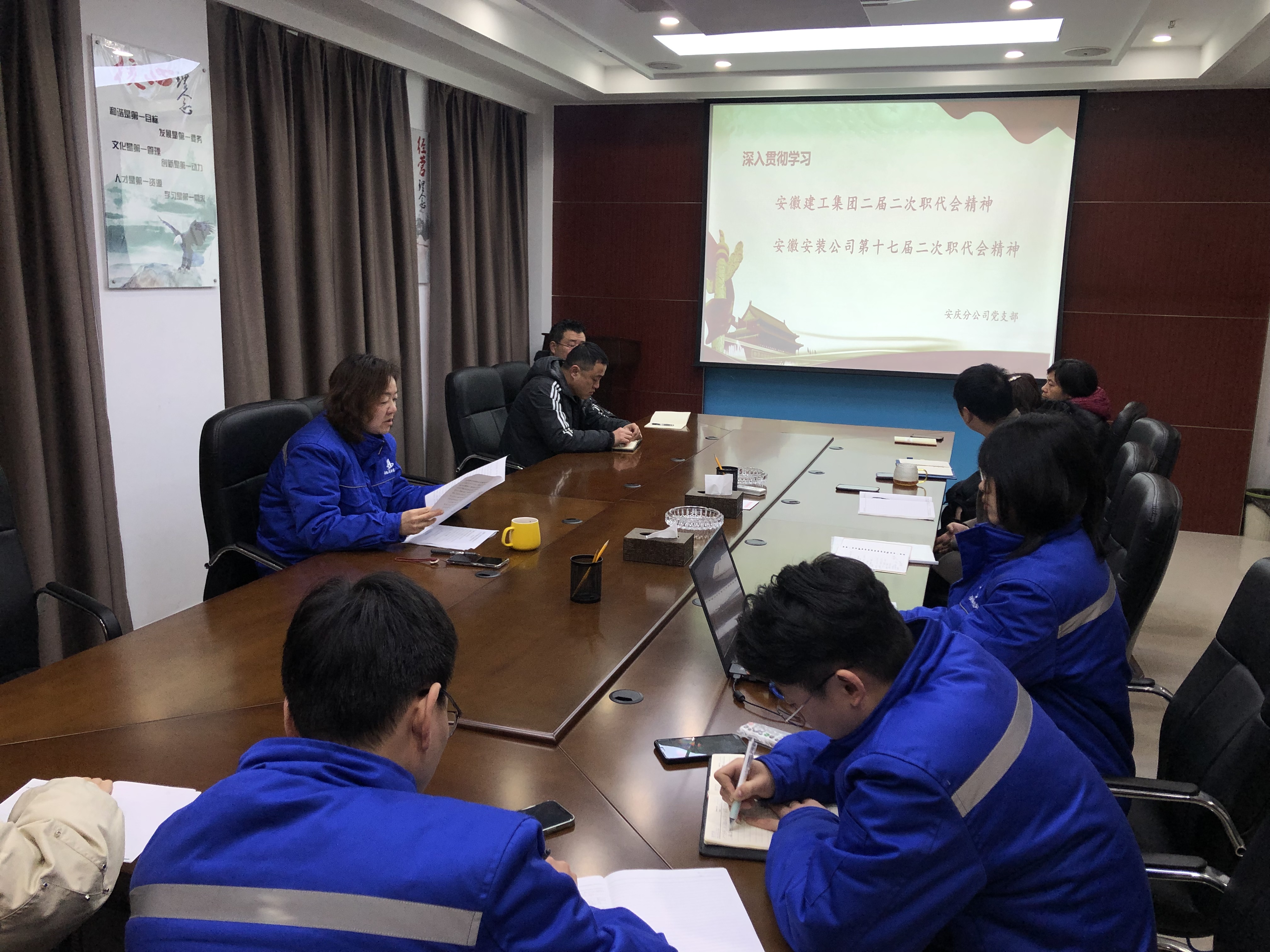 集團公(gong)司(si)、公(gong)司(si)兩(liang)級職代會(hui)相(xiang)繼召開(kai)之后,2月9日,安慶分(fen)公(gong)司(si)結合實際(ji),迅速在分(fen)公(gong)司(si)機關和項(xiang)目部(bu)分(fen)別組(zu)織(zhi)召開(kai)了(le)專(zhuan)題學習(xi)(xi)會(hui),積極開(kai)展學習(xi)(xi)宣貫兩(liang)級職代會(hui)精神。會(hui)議由分(fen)公(gong)司(si)黨支部(bu)書記劉紅艷主(zhu)持(chi)。
