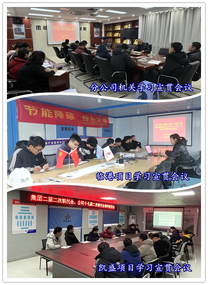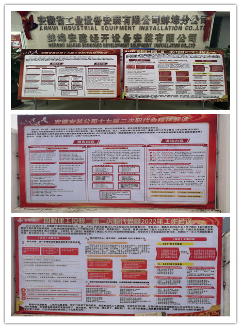 2月10日—11日,在(zai)分公司機關和(he)各在(zai)建(jian)項目一(yi)線召(zhao)開兩(liang)級職(zhi)代會(hui)精神(shen)專題宣貫會(hui)。會(hui)議(yi)由分公司黨(dang)支(zhi)部書(shu)記程(cheng)茂麗主持。會(hui)上(shang),程(cheng)茂麗首先傳(chuan)達了集團公司黨(dang)委(wei)書(shu)記、董事長(chang)趙(zhao)時運在(zai)集團二(er)(er)(er)屆二(er)(er)(er)次職(zhi)代會(hui)暨(ji)2022年(nian)度工作會(hui)議(yi)作的(de)題為(wei)《奮(fen)力譜寫(xie)安(an)(an)徽(hui)建(jian)工高質量(liang)發展(zhan)新篇章 以優異成(cheng)績迎接黨(dang)的(de)二(er)(er)(er)十大勝(sheng)利召(zhao)開》的(de)講(jiang)話(hua)(hua)和(he)集團黨(dang)委(wei)副書(shu)記、總經(jing)理、董事劉家(jia)靜作的(de)題為(wei)《拉(la)高標(biao)桿、爭創一(yi)流 不斷實現(xian)安(an)(an)徽(hui)建(jian)工更高質量(liang)更可持續發展(zhan)》的(de)工作報告;隨后又帶領(ling)大家(jia)深入解讀了公司黨(dang)委(wei)書(shu)記、董事長(chang)胡六中在(zai)公司十七屆二(er)(er)(er)次職(zhi)代會(hui)上(shang)所作的(de)《守正創新 實干篤行 強基固本 競進提質 以趕考(kao)姿態(tai)答好安(an)(an)徽(hui)安(an)(an)裝高質量(liang)發展(zhan)新答卷(juan)》的(de)報告及(ji)《黨(dang)建(jian)領(ling)航聚合力 深度融(rong)合強保障 以高質量(liang)黨(dang)建(jian)領(ling)航安(an)(an)徽(hui)安(an)(an)裝高質量(liang)發展(zhan)》的(de)講(jiang)話(hua)(hua)。
