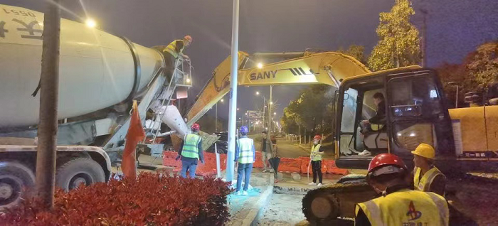 花園大道項(xiang)目部為保證了白天道路(lu)(lu)正常(chang)通行不受(shou)影響,項(xiang)目全體(ti)員工(gong)晚間加班加點進行過路(lu)(lu)段管道施工(gong)