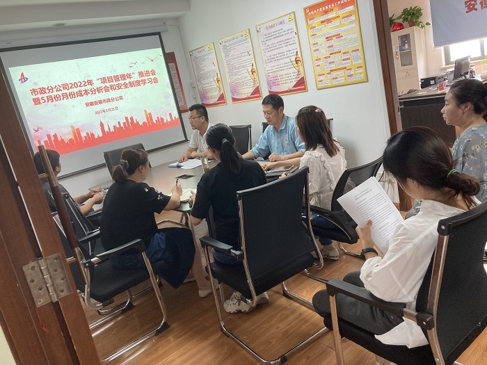 為(wei)進(jin)一步推進(jin)分(fen)(fen)公(gong)司(si)項目管(guan)理年活動(dong)的開展,5月25日下午市政分(fen)(fen)公(gong)司(si)在分(fen)(fen)公(gong)司(si)會(hui)議(yi)(yi)室召(zhao)開“項目管(guan)理年”推進(jin)會(hui)暨(ji)5月份(fen)成(cheng)本分(fen)(fen)析會(hui)議(yi)(yi),黨(dang)支部書記胡迎(ying)東主持會(hui)議(yi)(yi),分(fen)(fen)公(gong)司(si)機關員工、項目員工參加會(hui)議(yi)(yi),會(hui)議(yi)(yi)以現場加視頻方(fang)式(shi)召(zhao)開。